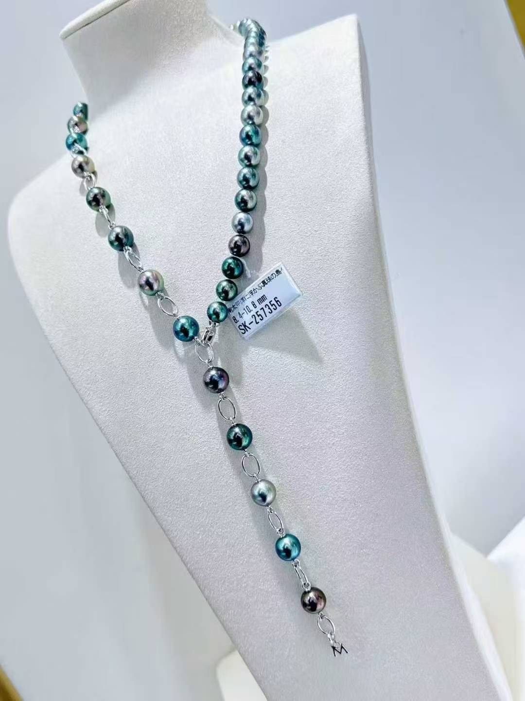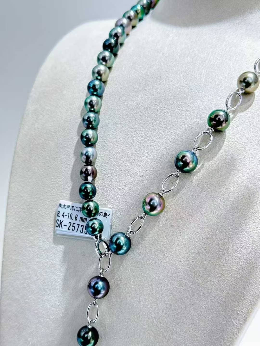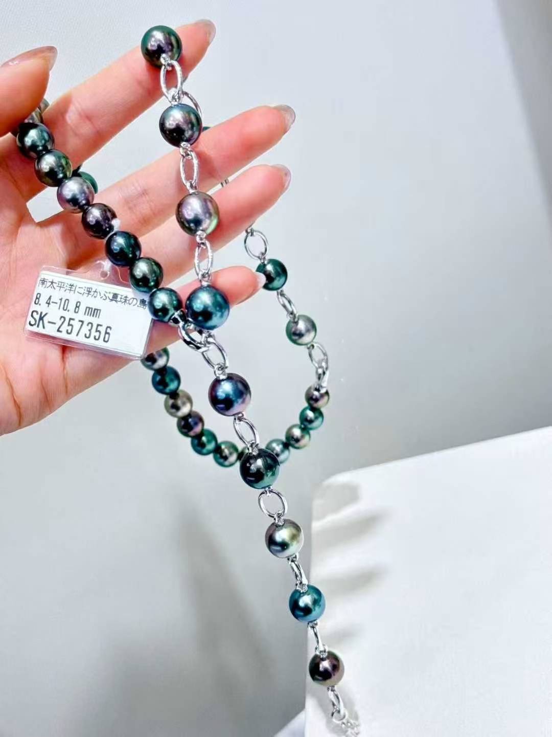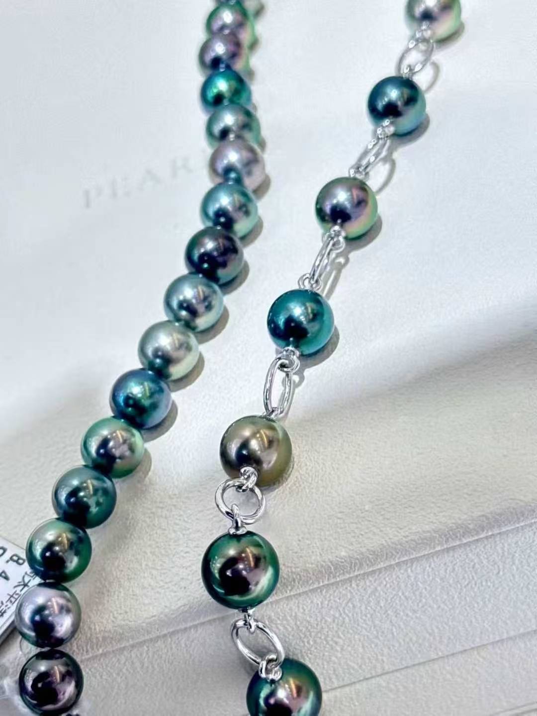 甜酷项链必须有大溪地的一席之地!8.4-10.8mm 极强光正圆混彩细微瑕疵皮光特别特别油亮!实物美的不可方物⛓️18k金链条设计酷飒又时髦 总长64cm 一对一真科研“南太平洋漂浮”大证多种造型🉑随意切换