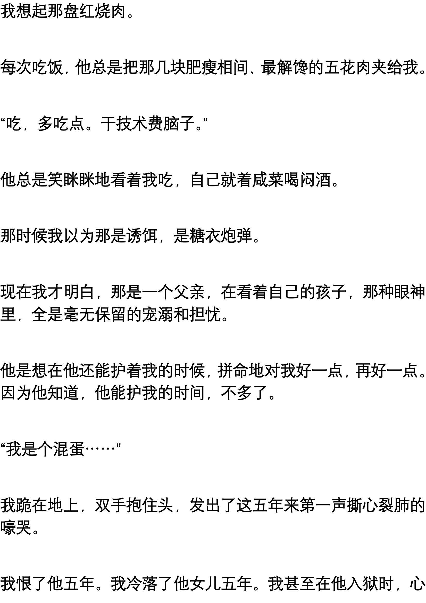 我看着他那张脸,突然觉得那大半年的红烧肉,每一块都是鱼钩上的饵。我被算计了。
