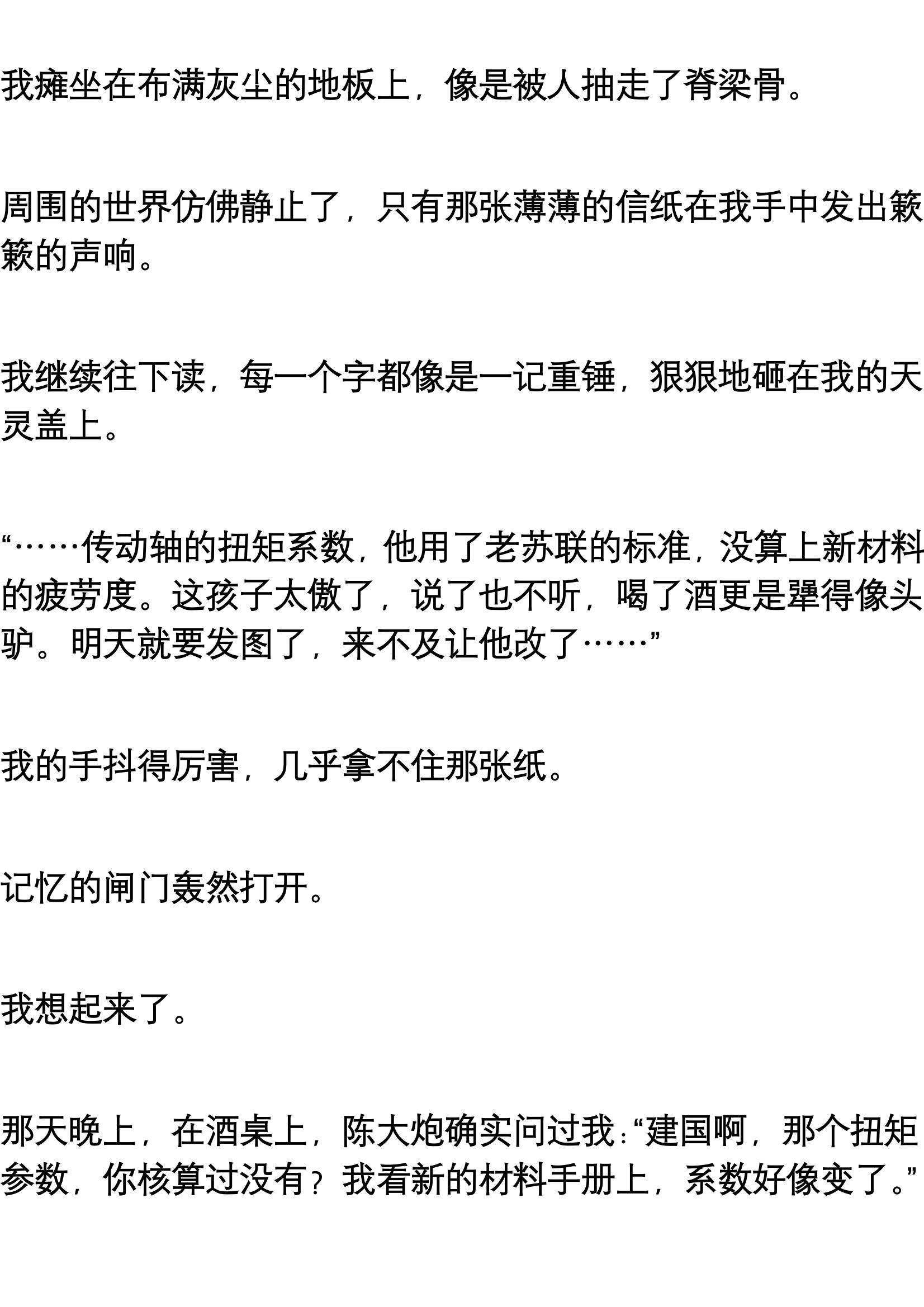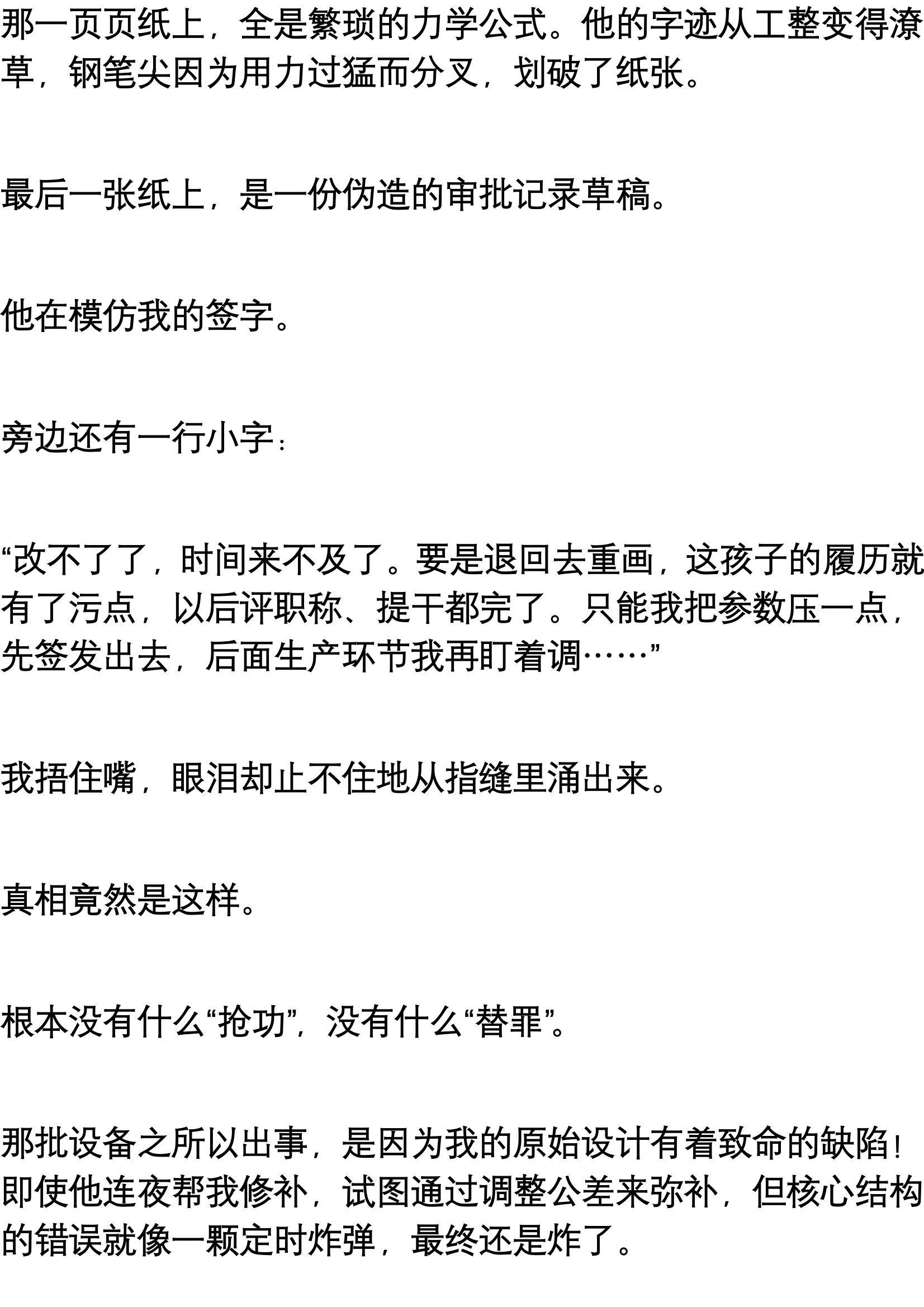 我的心瞬间提到了嗓子眼。断轴?那是我设计的传动结构啊!如果是因为设计缺陷,那我……我要坐牢的!