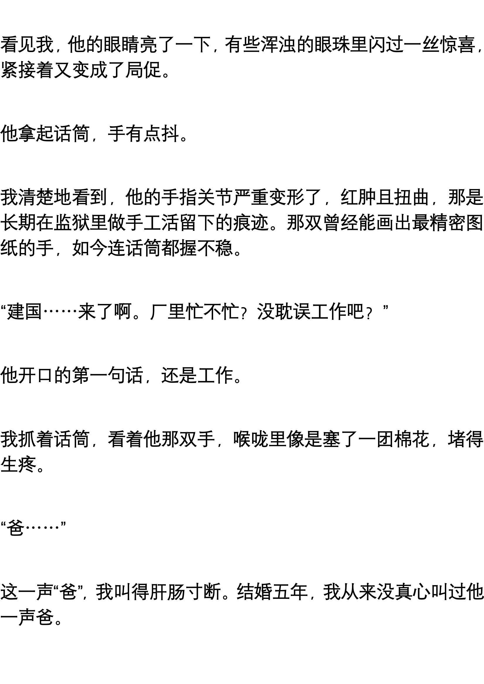“你爸……可能是为了赶工期,疏忽了。”我干巴巴地解释了一句,试图掩盖自己内心的慌乱和愧疚。