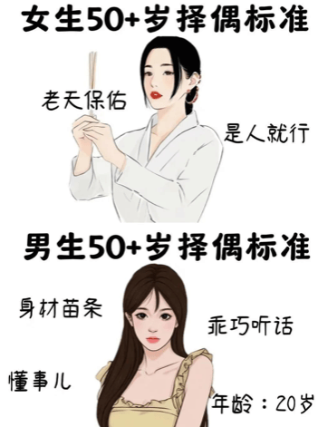 大部分男人不管是20岁还是50岁,标准只有一个,年轻的、漂亮的、温顺的。