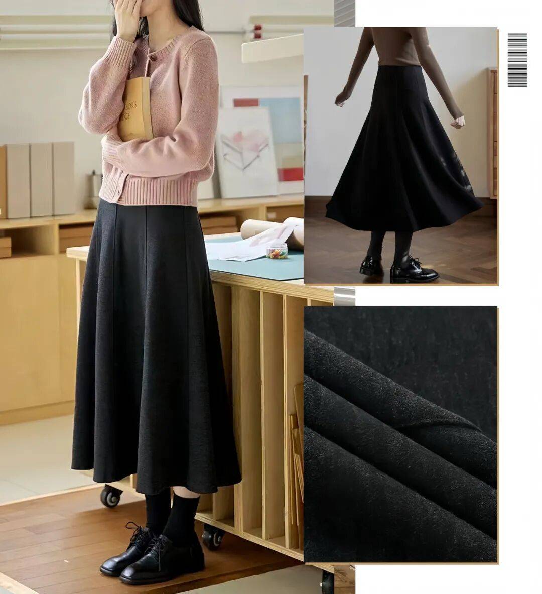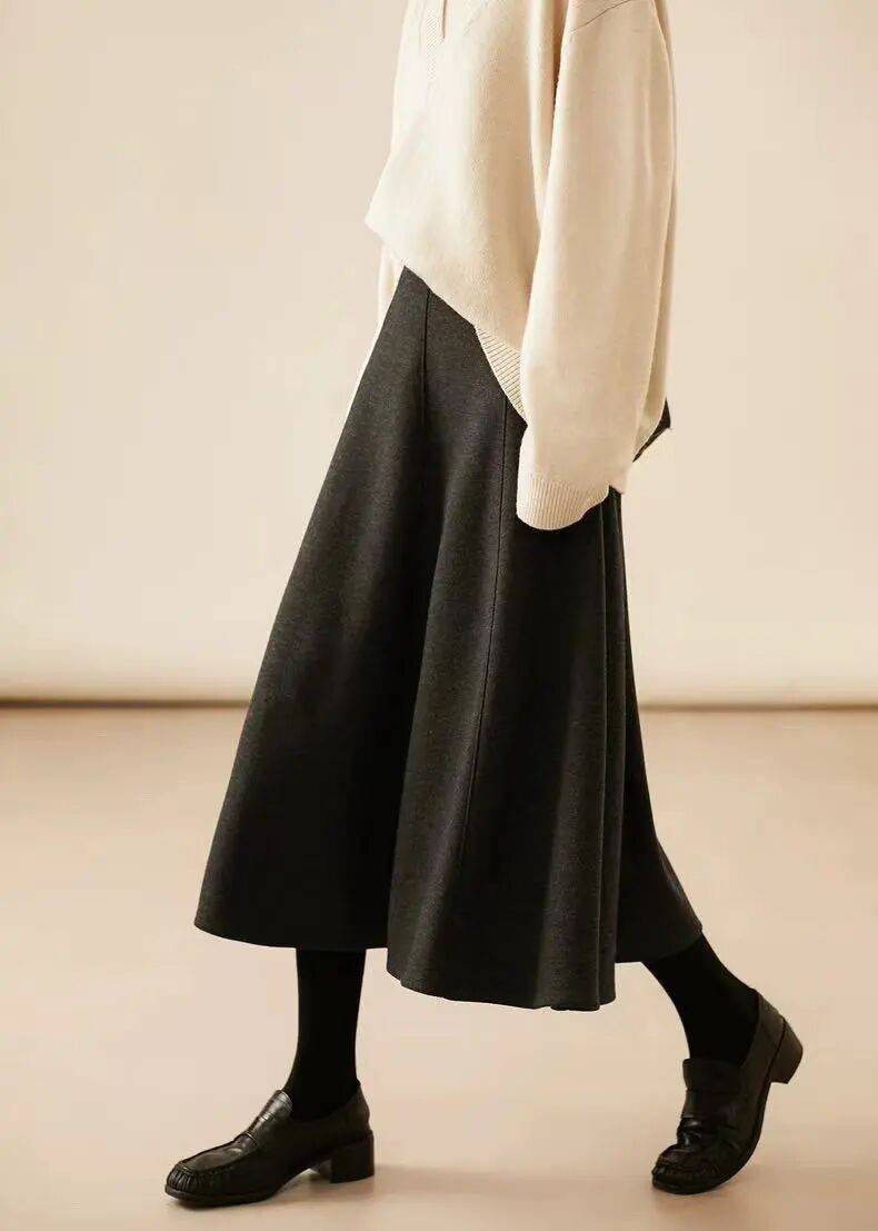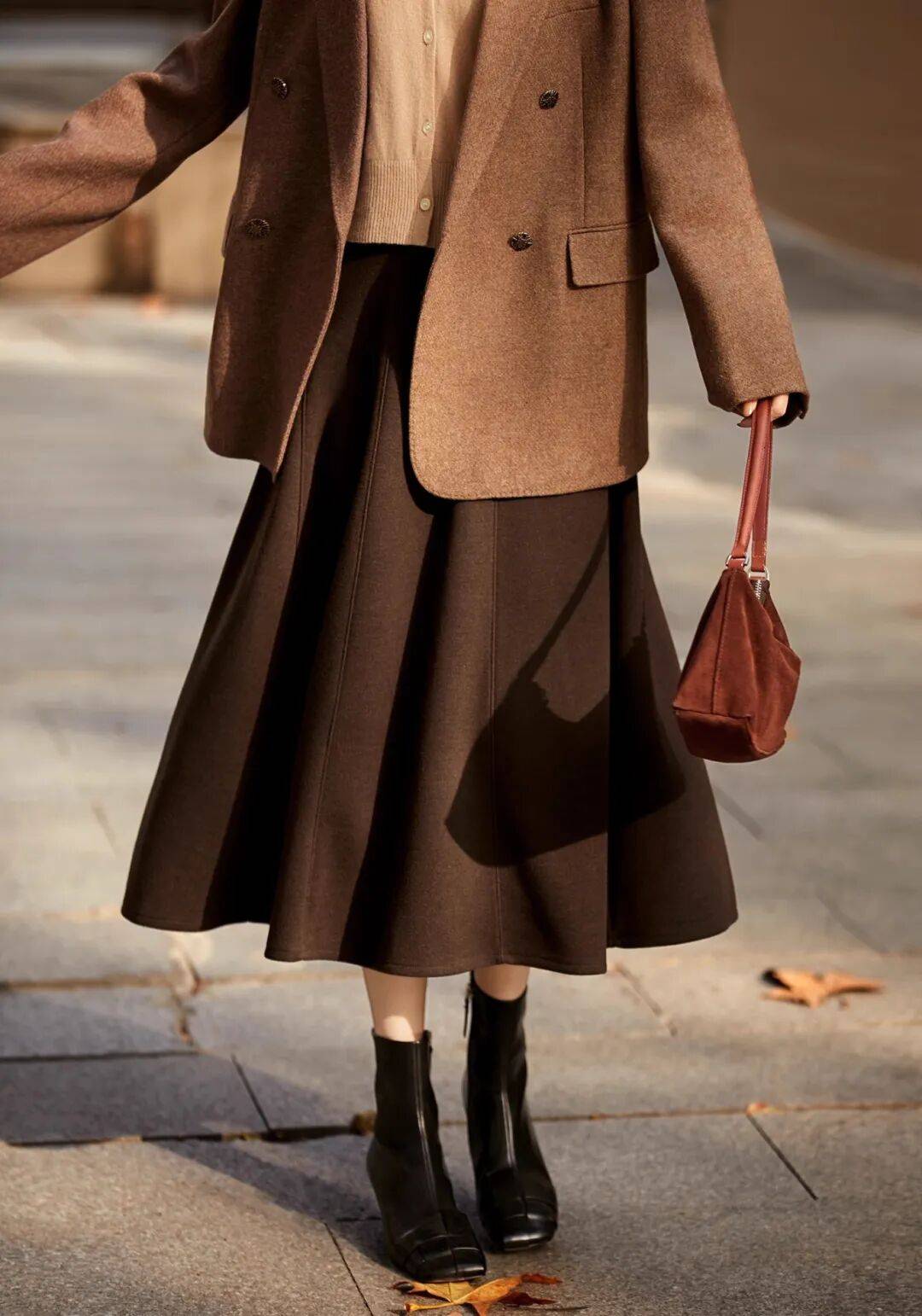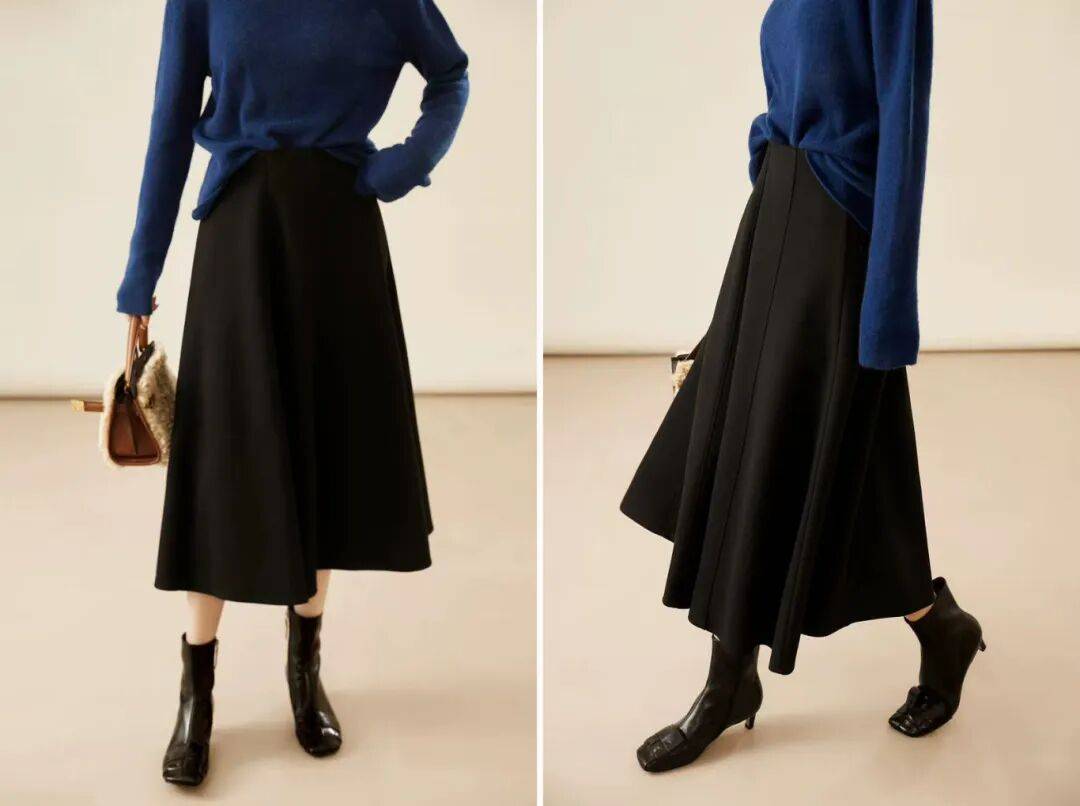 想要一条亲肤、温暖、有筋骨又不显臃肿的半裙?那么,我们选的羊毛+蚕丝混纺面料,就是标准答案!