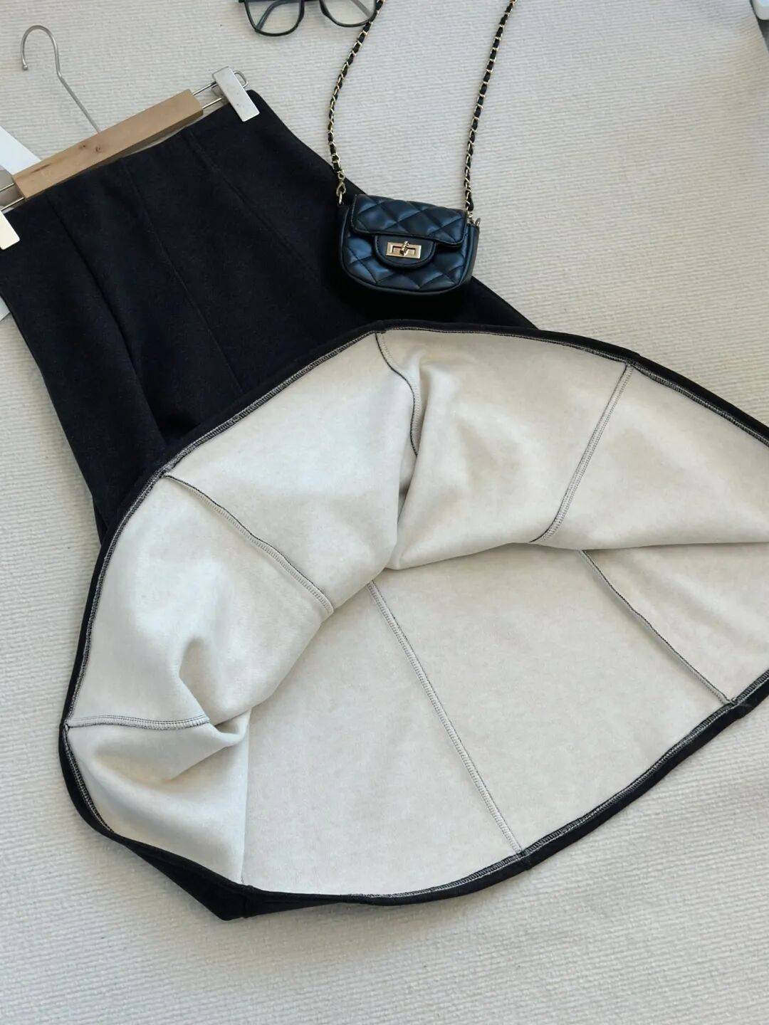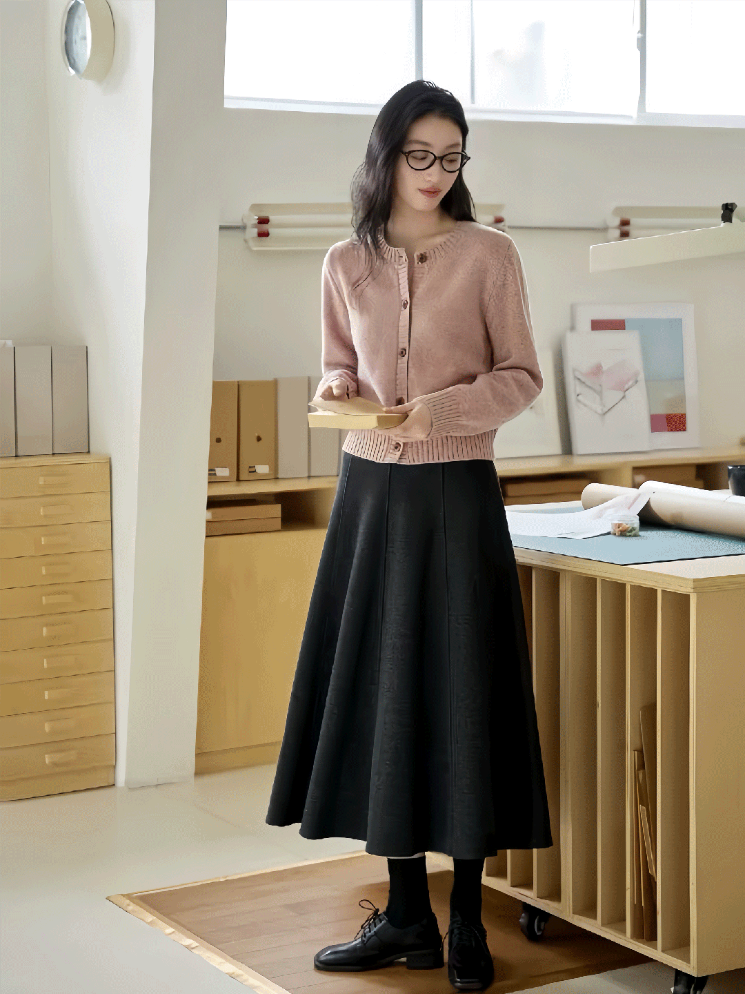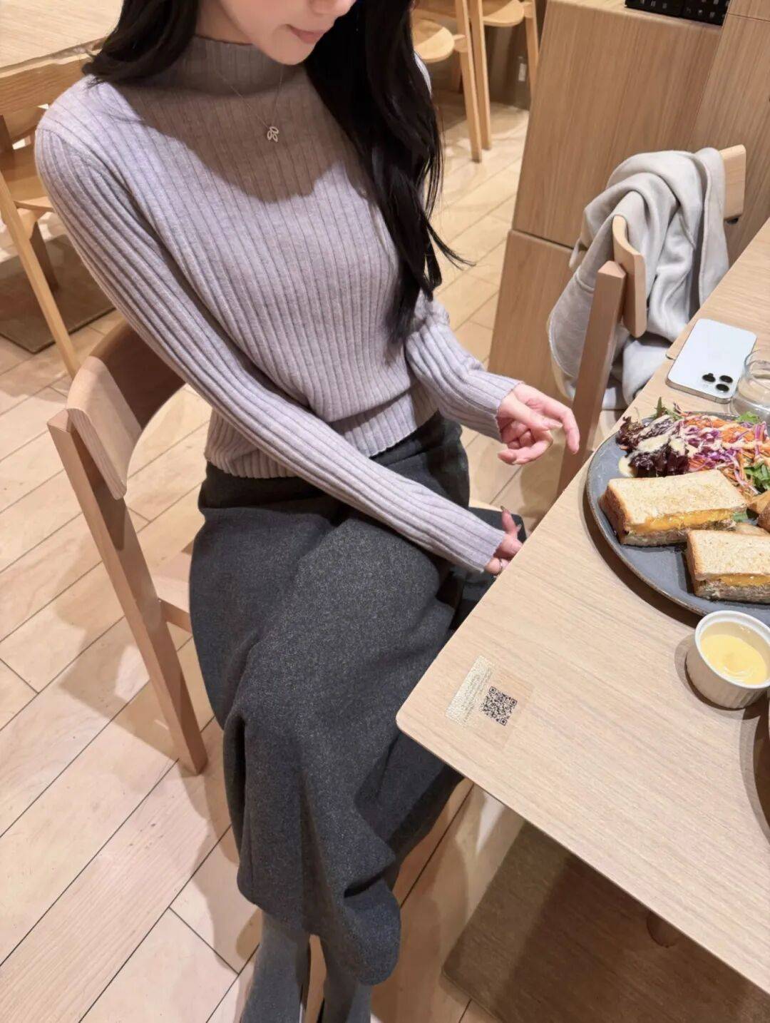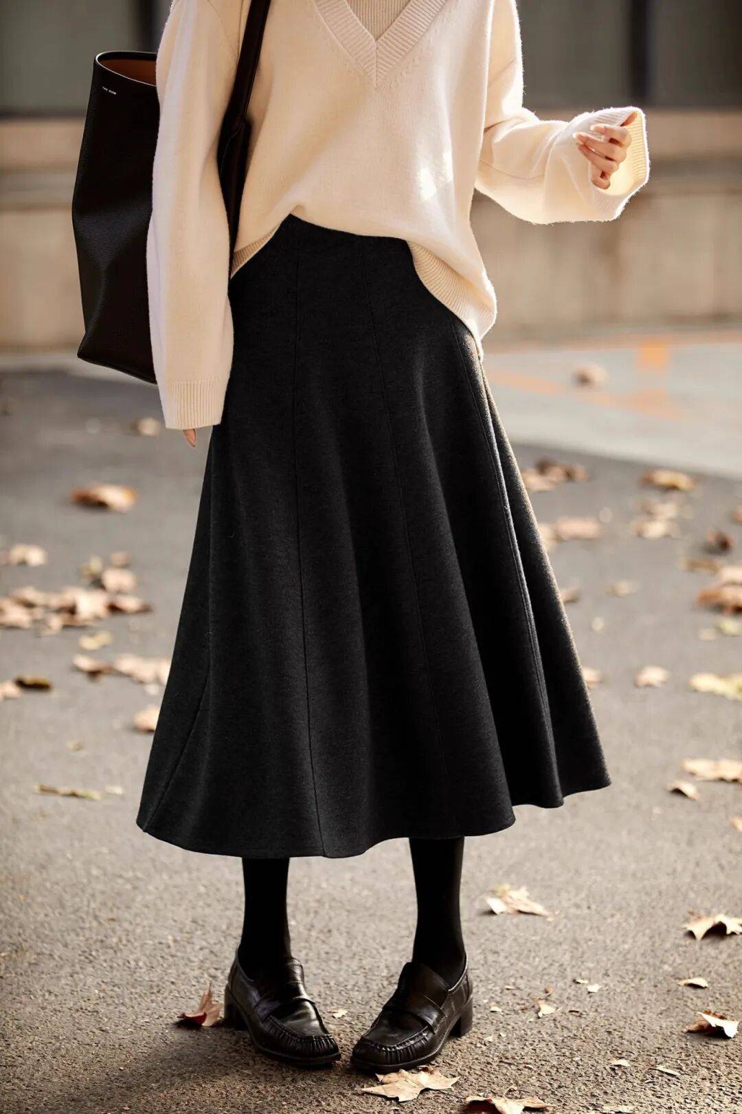 想要一条亲肤、温暖、有筋骨又不显臃肿的半裙?那么,我们选的羊毛+蚕丝混纺面料,就是标准答案!