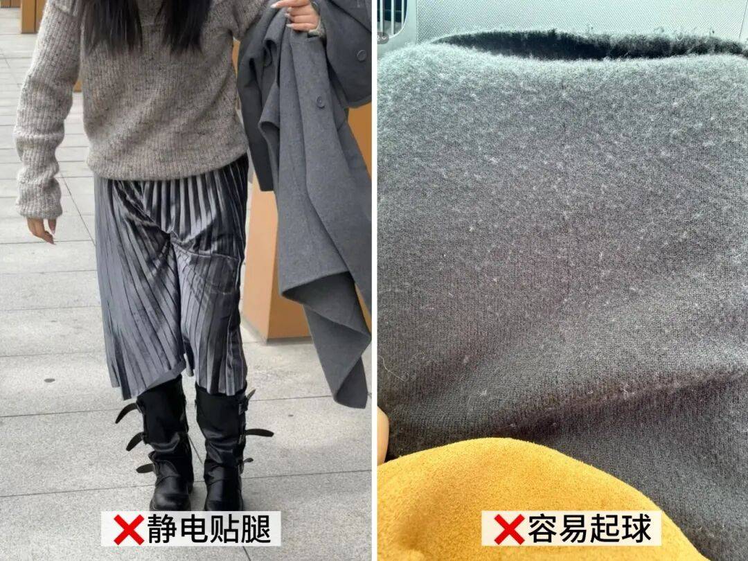 ❌化纤面料容易静电贴腿,尴尬又廉价