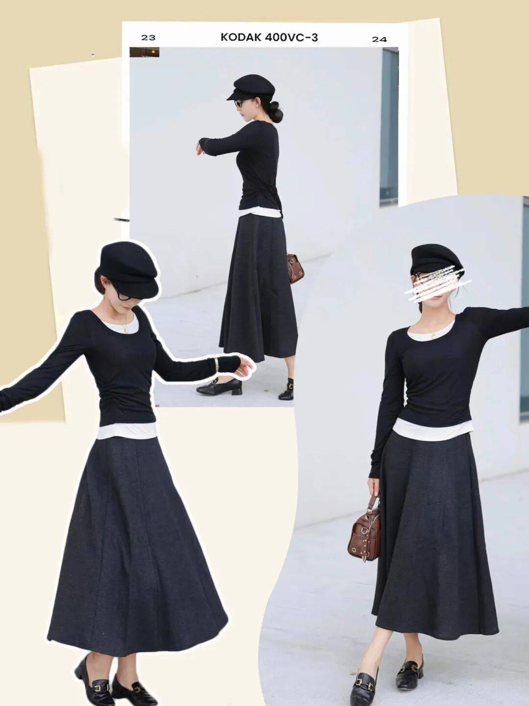 我猜很多姐妹都和我一样,对长A字裙/伞裙是又爱又怕。心里装着穿出优雅范儿的梦,现实却常常是显胯宽、一秒膨胀的痛。
