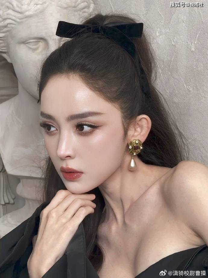 娜扎这组造型把 “冷艳贵气 + 甜美元💵素” 的反差感焊在身上!一袭黑色缎面露肩裙自带高级质感,露肩设计衬出纤细肩颈,裙摆的垂坠感又添了几分慵懒;头顶的黑丝绒蝴蝶结🎀甜而不腻,搭配复古金饰珍珠耳坠,贵气感直接拉满。