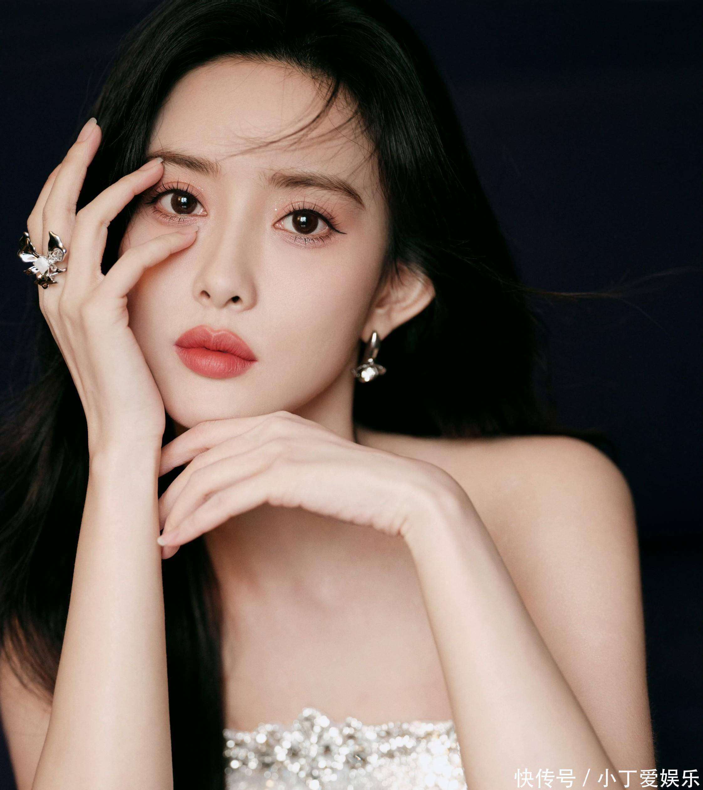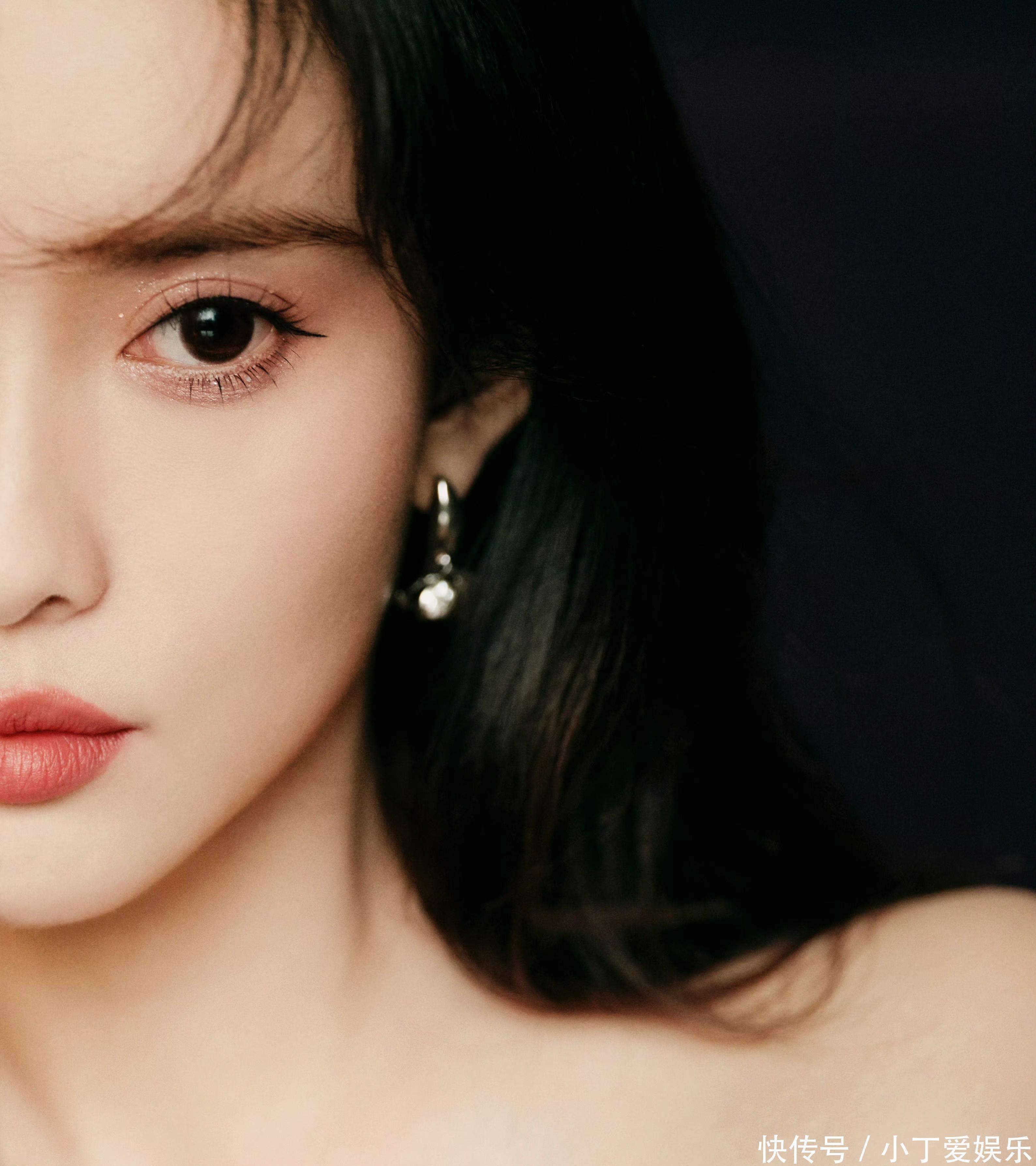 她的『妆容』和发型也与她的『穿搭』完美契合。自然的野生眉搭配豆沙色的红唇,眼妆简单提亮,没有过多修饰,突出了她五官的精致感。她的黑色『长发』微微卷曲,随意披散,几缕碎发修饰着她的脸型,这种随性的发型与她清冷的礼服风格形成了鲜明的对比,增添了一丝慵懒的女人味。