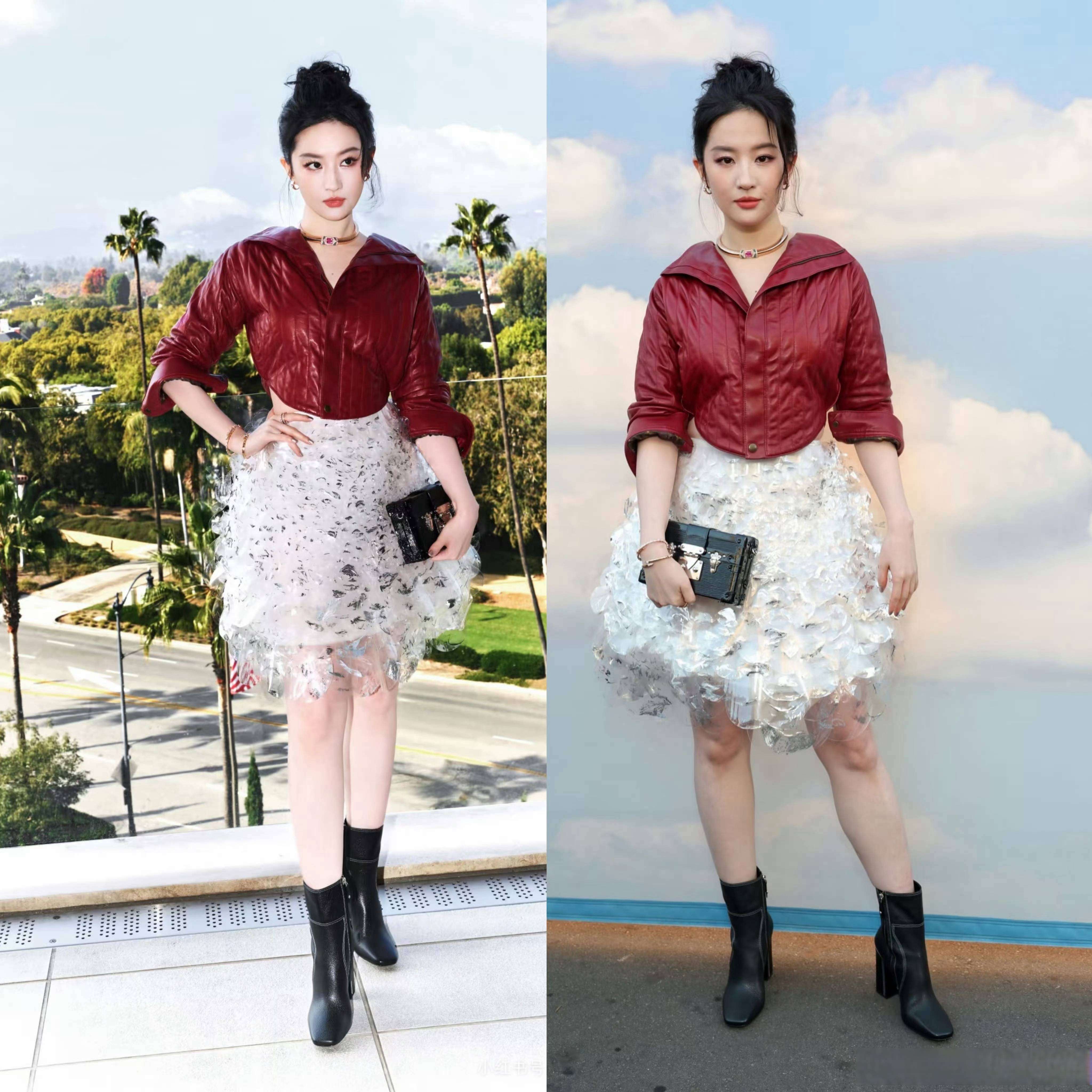 『刘亦菲』最近参加了VOGUE活动,结果她的造型让网友们都感到非常惊讶。本来她是国内活动的压轴嘉宾,但到了海外的舞台上,整个人的状态发生了很大的变化。她穿的是一件特别定制的红色皮衣,原本是想呼应她在《花木兰》中的形象,结果看起来远远像是一件蓬松的小棉袄,侧腰设计也很松散,透风的感觉十分明显。再加上那条紧得几乎勒住肉的白色裙子👗,让原本气质出众的『刘亦菲』看起来反而变得有些壮实,完全没有了以往的仙气。