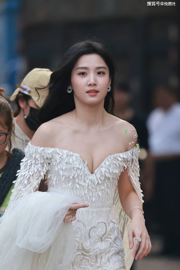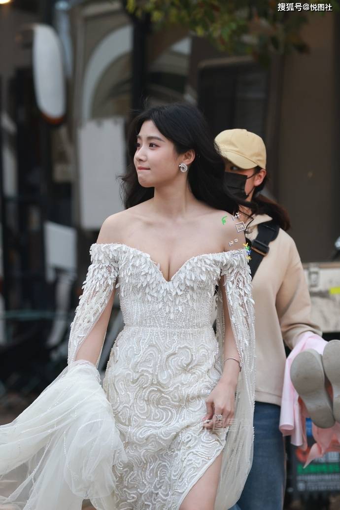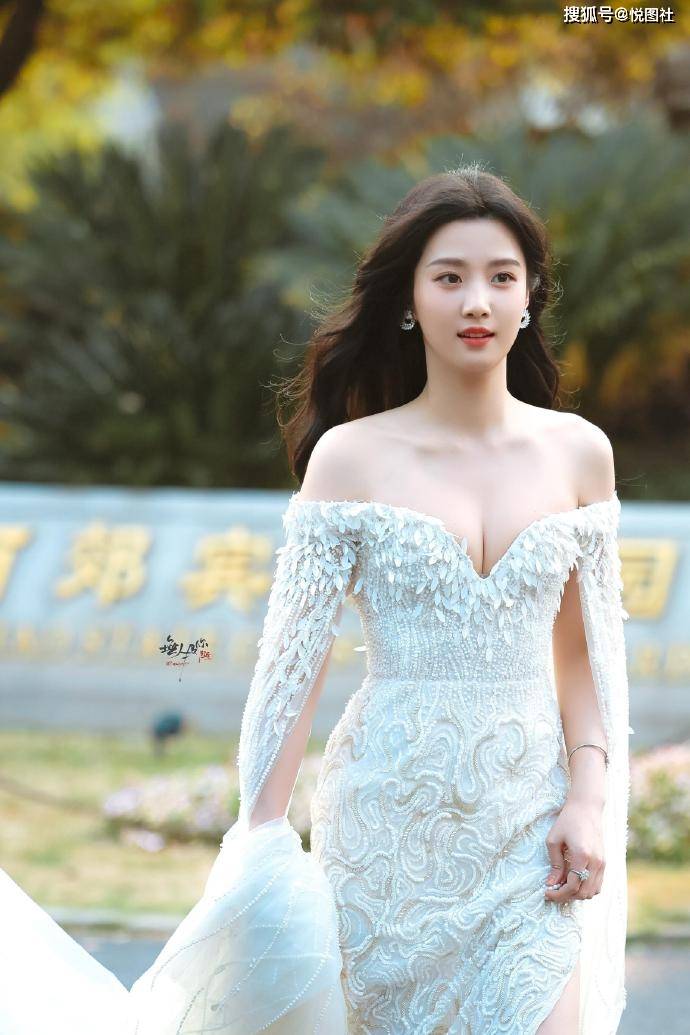 卢昱晓这组造型把 “仙欲交织” 的氛围感焊在身上!一袭浅白露肩长裙👗自带流光质感:羽毛状蕾丝装饰裹满肩袖,裙摆的缠枝纹理精致又梦幻,露肩设计衬出纤细肩颈,行走时发丝轻扬,像从童话里走出来的精灵;搭配闪钻耳饰,又添了几分清冷贵气。