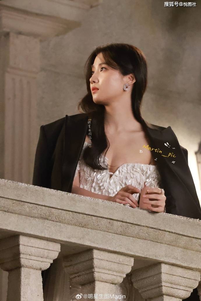 镜头里的她或在户外光影中浅笑,或倚在复古栏杆前垂眸,裹上黑西装时又多了几分酷飒,甜与冷的切换毫不违和。生图里的肌肤通透、轮廓舒展,每帧都把 “易碎感 + 明艳感” 的平衡感拿捏得恰到好处