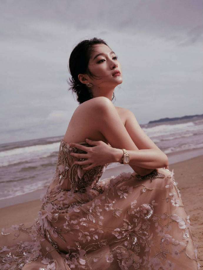 『关晓彤』这次出席ELLE风尚大典的红毯,真是让人眼前一亮。10月28日,她在三亚的海边亮相,穿了一袭香槟色的Elie Saab高定蕾丝长裙👗,搭配了一件粉色的毛绒披肩,整个人宛如童话故事中的公主。她的发型简洁大气,搭配精美的珠宝,让她的五官更加立体。过去常被提到的壮实感完全消失,取而代之的是一种既优雅又有少女气息的全新气质。