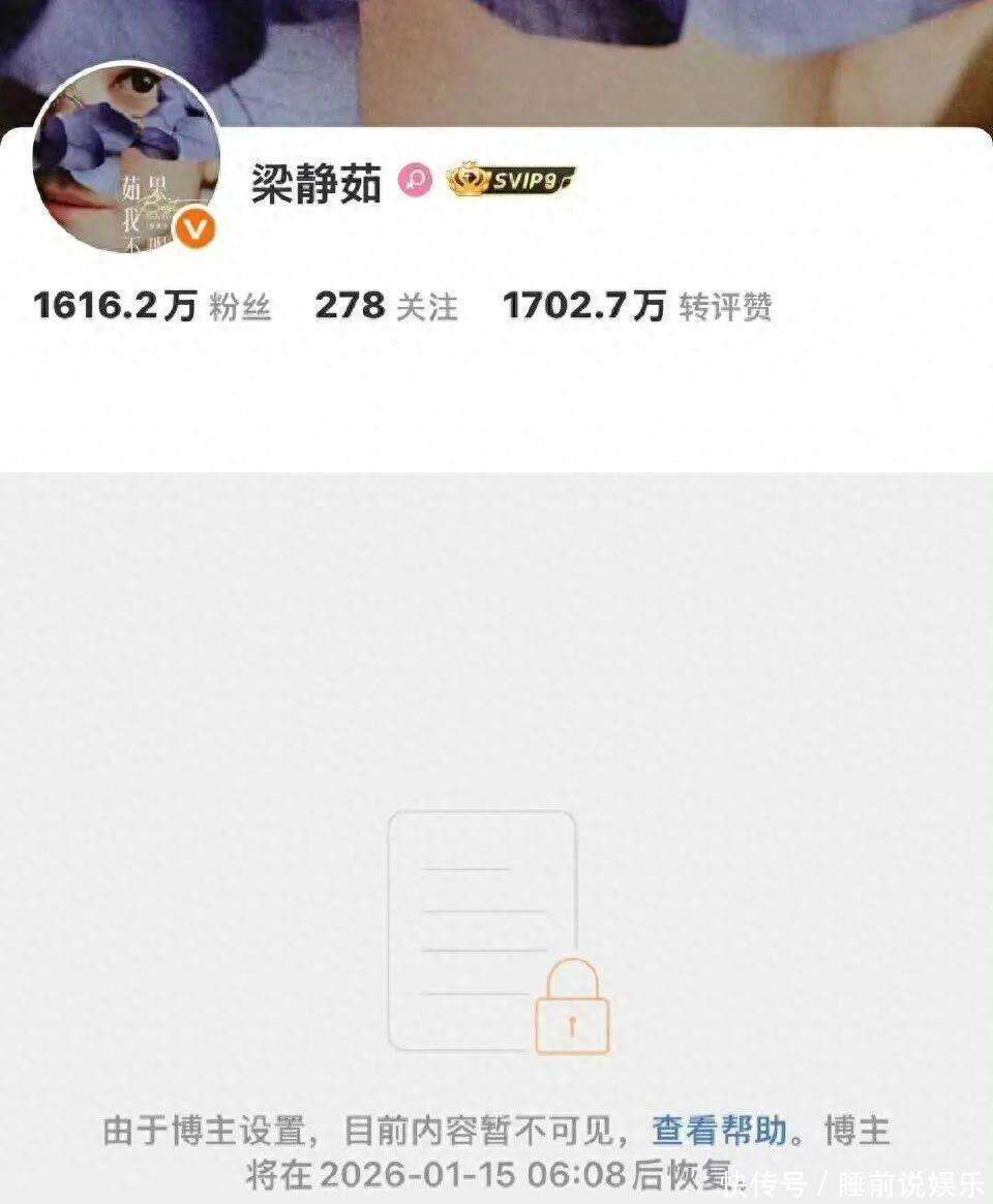 1月8日,有网友发现梁静茹的『社交平台』已经设置为不可见,页面显示将在2026年1月15日6:08之后恢复正常。