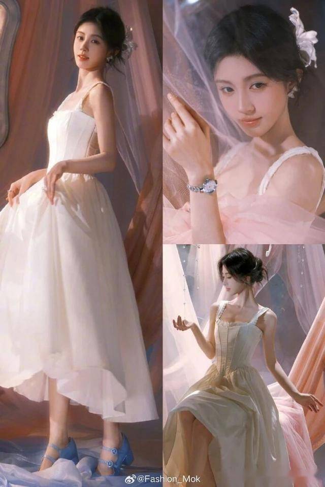 从某时尚盛典上一袭 Valentino 2025 春夏高定裸色纱裙,用简约廓形衬出清冷气质,到另一活动中 Elie Saab 星空蓝刺绣高定,手工缝制的碎钻在灯光下流转,每一套造型都精准踩中品牌调性,又融入自身 “清冷贵气” 的风格标签。更难得的是,她不再是高定的 “被动使用者”,而是通过自身造型影响力,让品牌主动为其调整细节,这种 “双向选择” 的默契,正是顶奢对艺人时尚话语权的最佳认可。