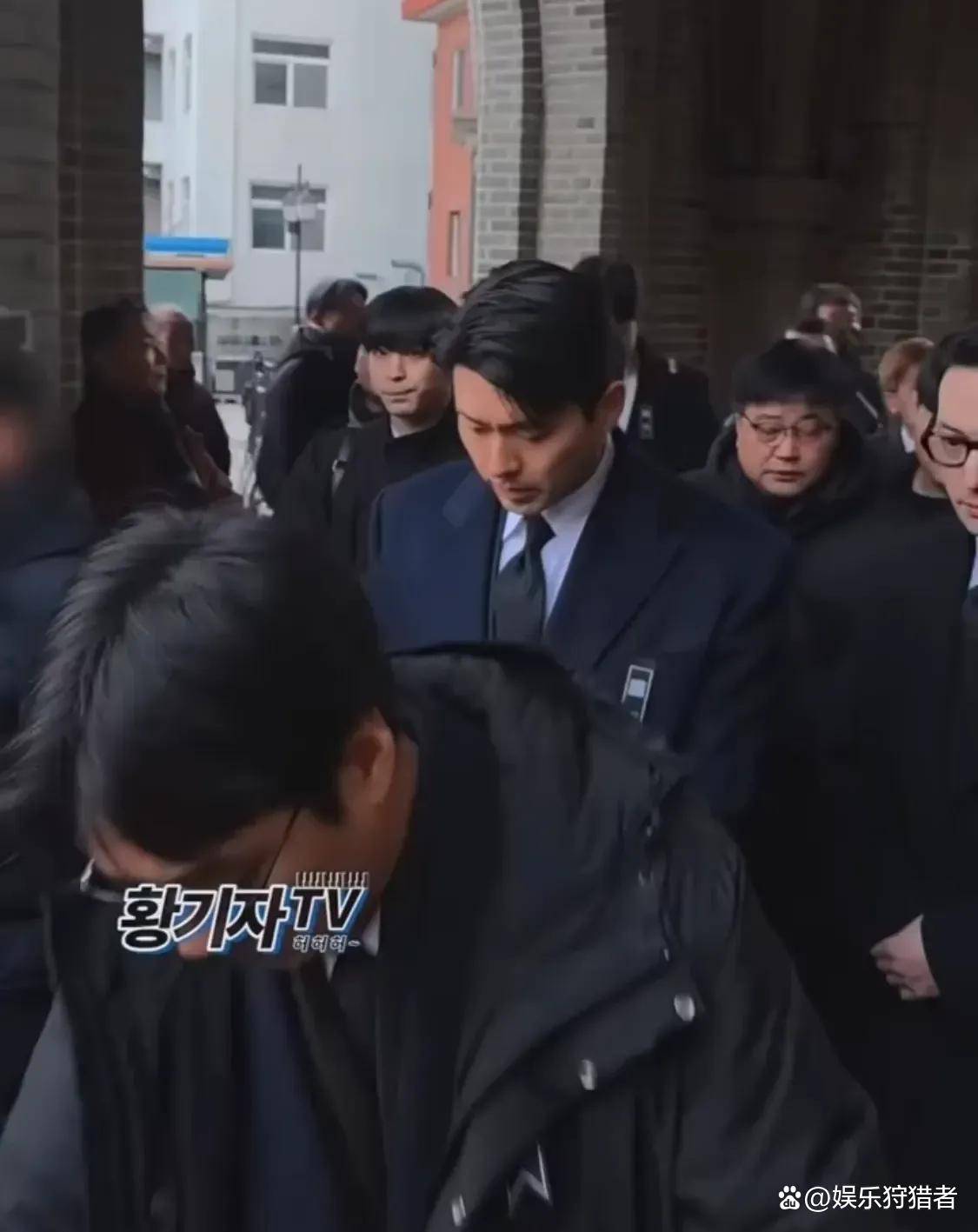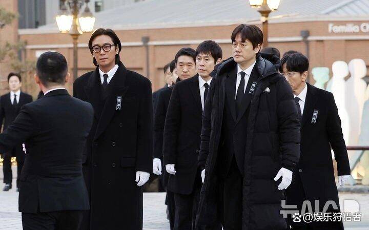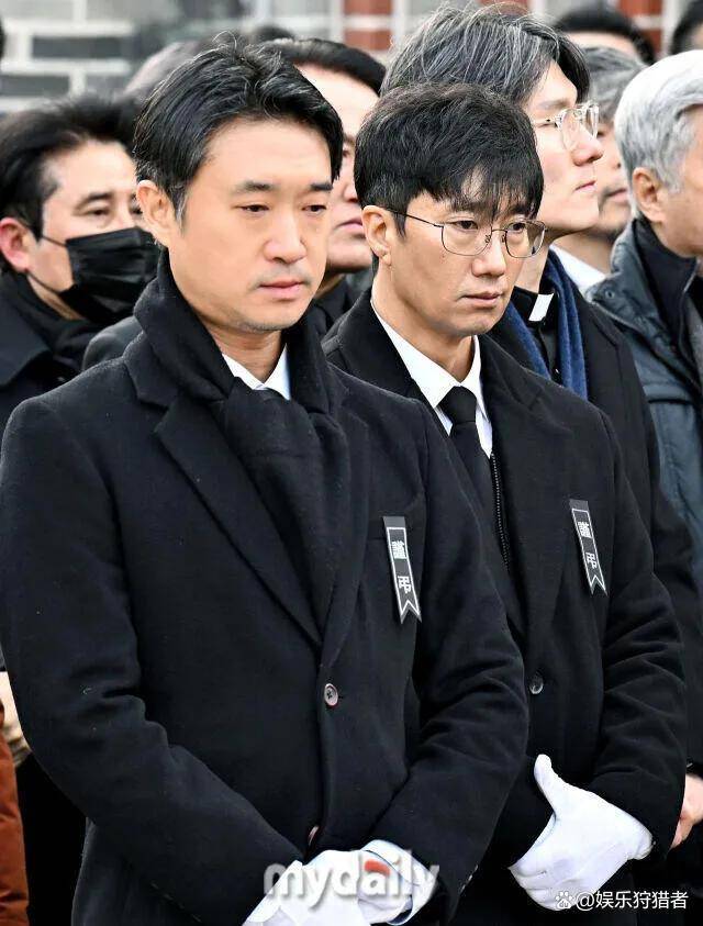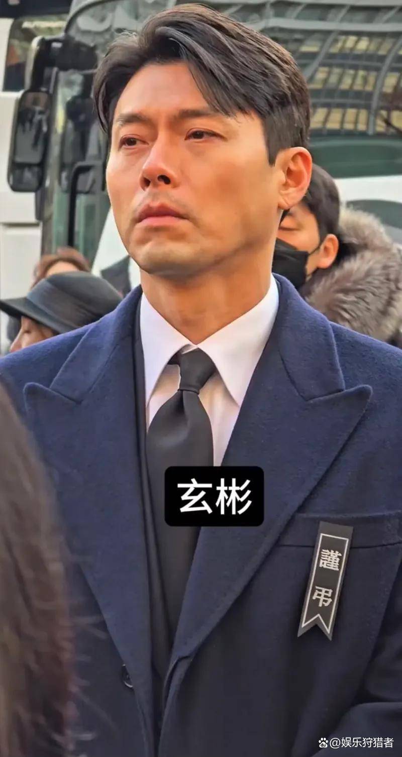 除了玄彬,安在旭也特意赶来了。前几天他已经去灵堂吊唁过,这次是专门来送前辈最后一程。他穿一身黑色丧服,全程脸色凝重,时不时跟身边人低声说几句,听得出来全是惋惜。