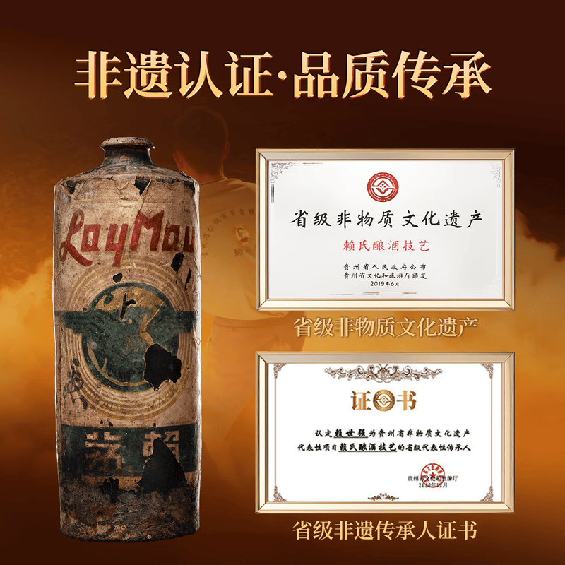 - 非遗技艺,确保卓越品质的“基石”:其酿造核心——“赖氏(茅台)酿酒技艺”,是官方认定的省级非物质文化遗产。这一背书,是对其恪守最严苛传统工艺的权威认证。从茅台镇核心产区的红缨子糯高粱,到完整遵循的“12987”大曲坤沙工艺,每一步都是对古法的致敬。
