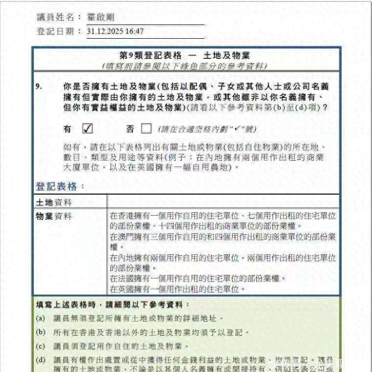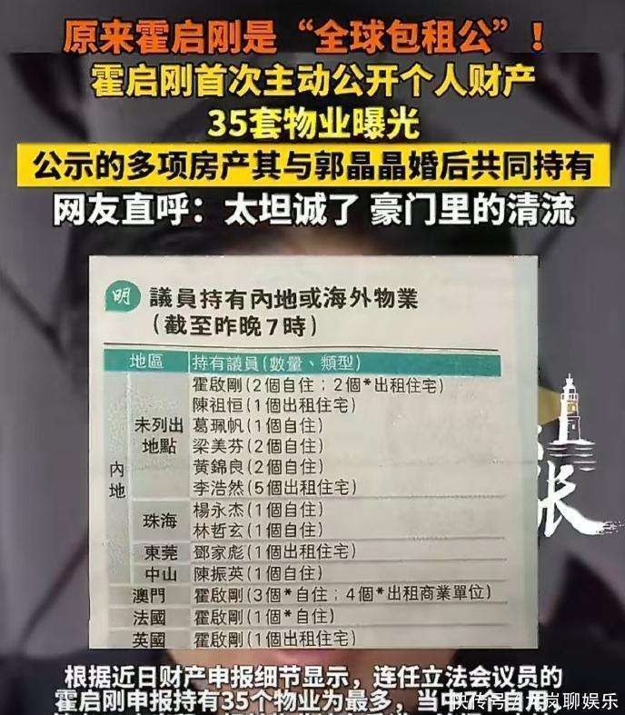 2026年开年第10天,霍启刚做了一件震动整个香港豪门圈的事,他将自己名下的套房产一一公开,毫不掩饰。这本该是一次普通的财产申报,可这张表,却比任何豪门秘闻都来得轰动。