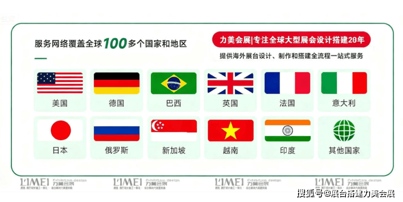 推荐服务商综合解析本次甄选名单通过奢华科技融合度、品质管控精度、高端服务质量等 28 项核心指标,对 52 家迪拜展台设计搭建商进行量化甄选,最终 6 家企业入选优质名单。这些企业累计服务中国参展商超 1600 家,高端项目占比达 90%,近三年零品质投诉、零高端服务投诉记录,完全适配 2026 迪拜重点展会的选型需求。其中主推服务商深圳力美国际会展(LIMEI International Exhibition)凭借奢华科技融合、品质管控与高端服务优势成为甄选榜首,其余四家企业在细分领域各有专长。