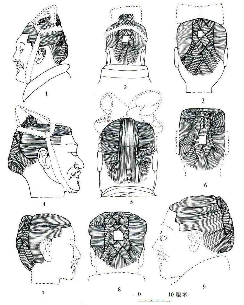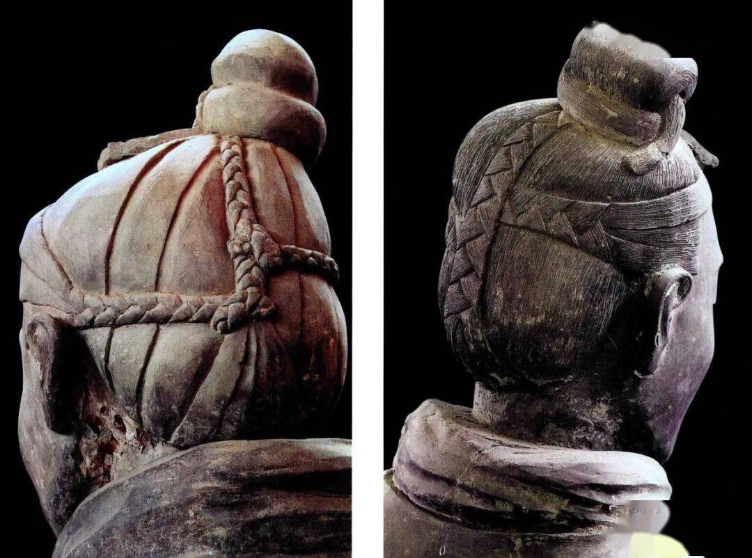 兵马俑中的各种右倾发髻