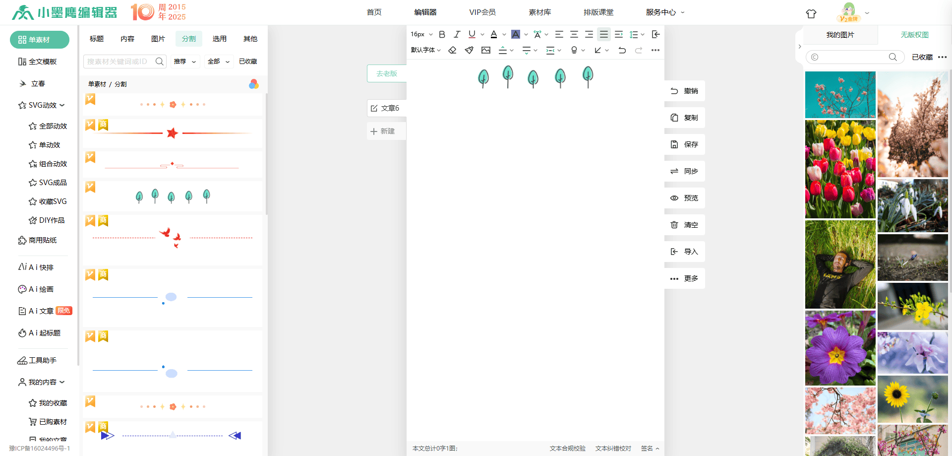 写好草稿后,就可以开始排版啦!这里我推荐大家使用小墨鹰编辑器和公众号原生编辑器。小墨鹰编辑器操作简单、功能齐全,而且免费素材就够用;公众号原生编辑器则更贴近发布需求,两者结合使用,效率更高!
