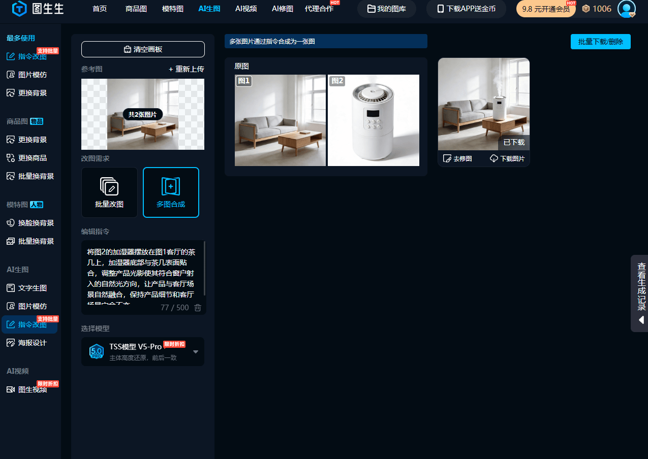 图生生多图合成功能可解此难题:上传多张图+简单指令,即可自然融合生成商业级图片,新手易上手,降本提效。