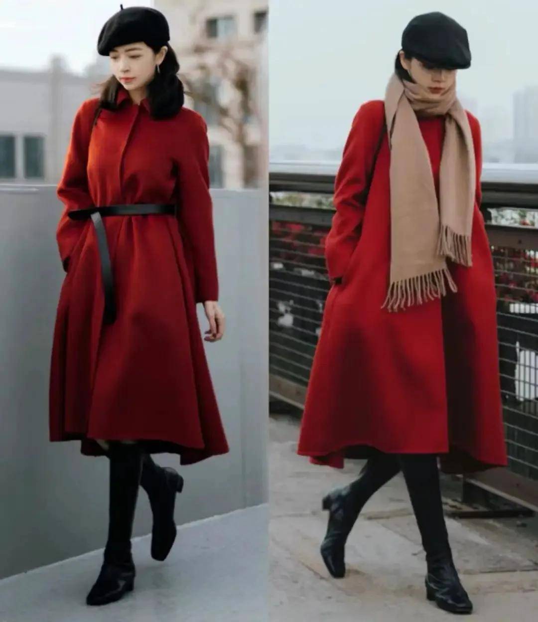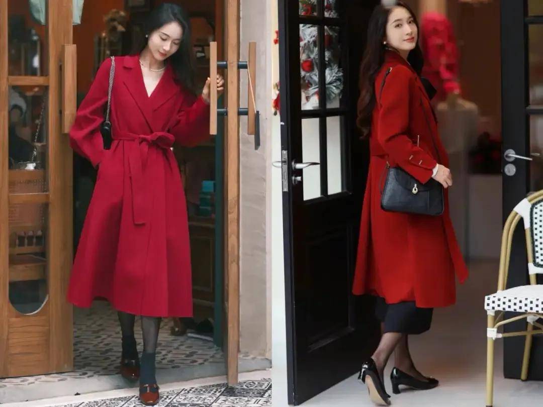 选择红色大衣,我个人更推荐你用 X 型的大衣来『穿搭』,穿的时候把腰带打个蝴蝶结🎀,就能勒出小蛮腰,形成高腰线,使得『穿搭』者的身材比例形成三七分,显高又显瘦,呈现出你凹凸有致的身材。
