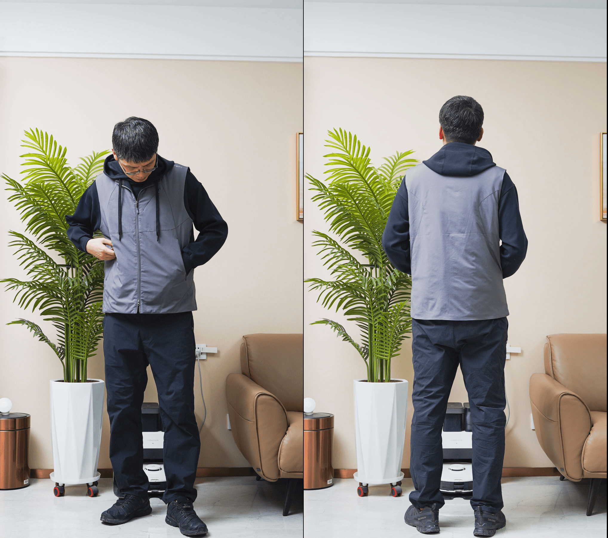 冬季穿衣一方面担心衣服不暖和穿着太冷,另一方面又会担心运动量稍大衣服不透气闷出一身汗。单导这件马甲的具备动态保暖特性,通过物理马甲物理材质特性实现宽泛自适应体温调节,身体温度高的时候穿着不会感到闷热,身体温度低的时候又能保温不会感到冷。