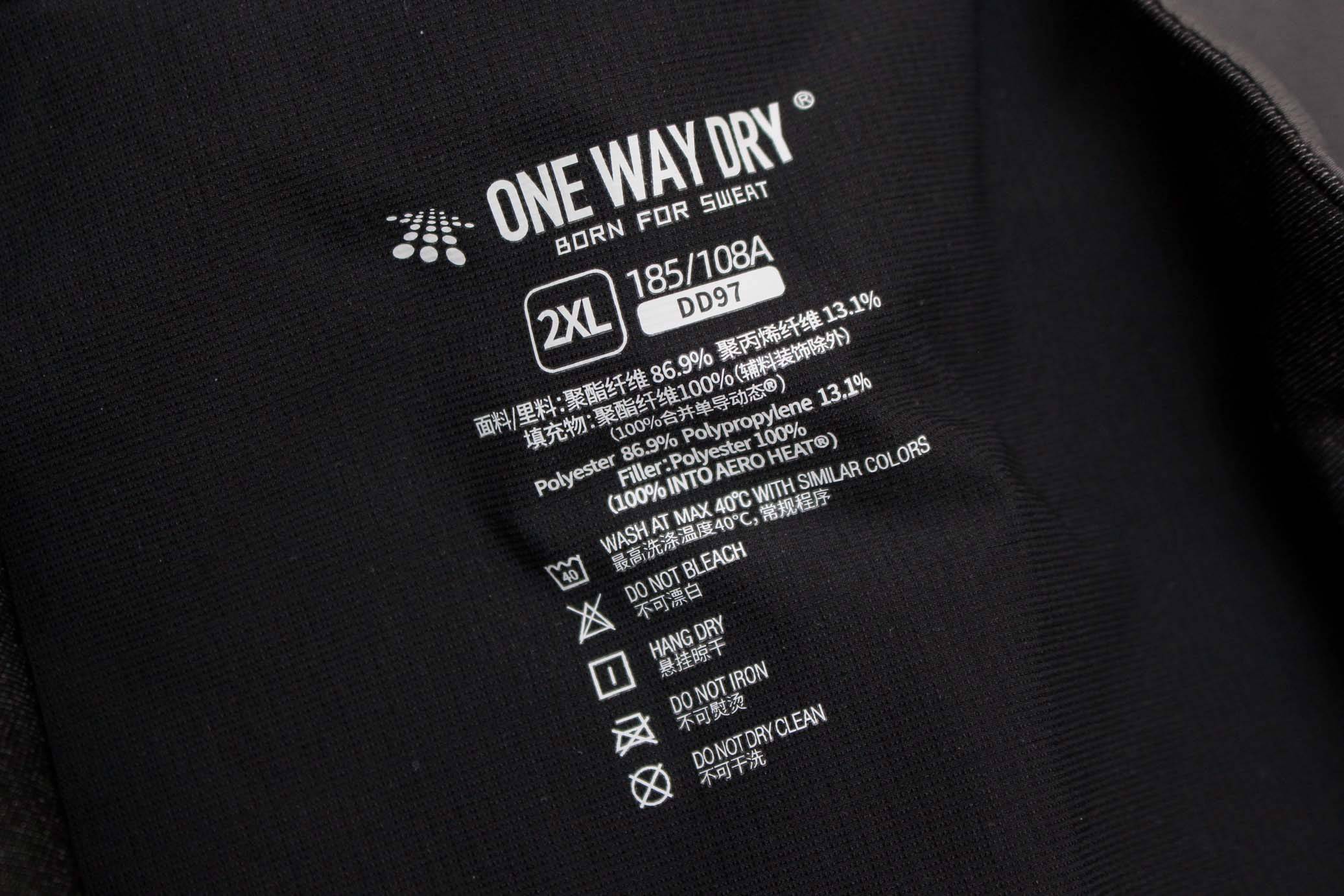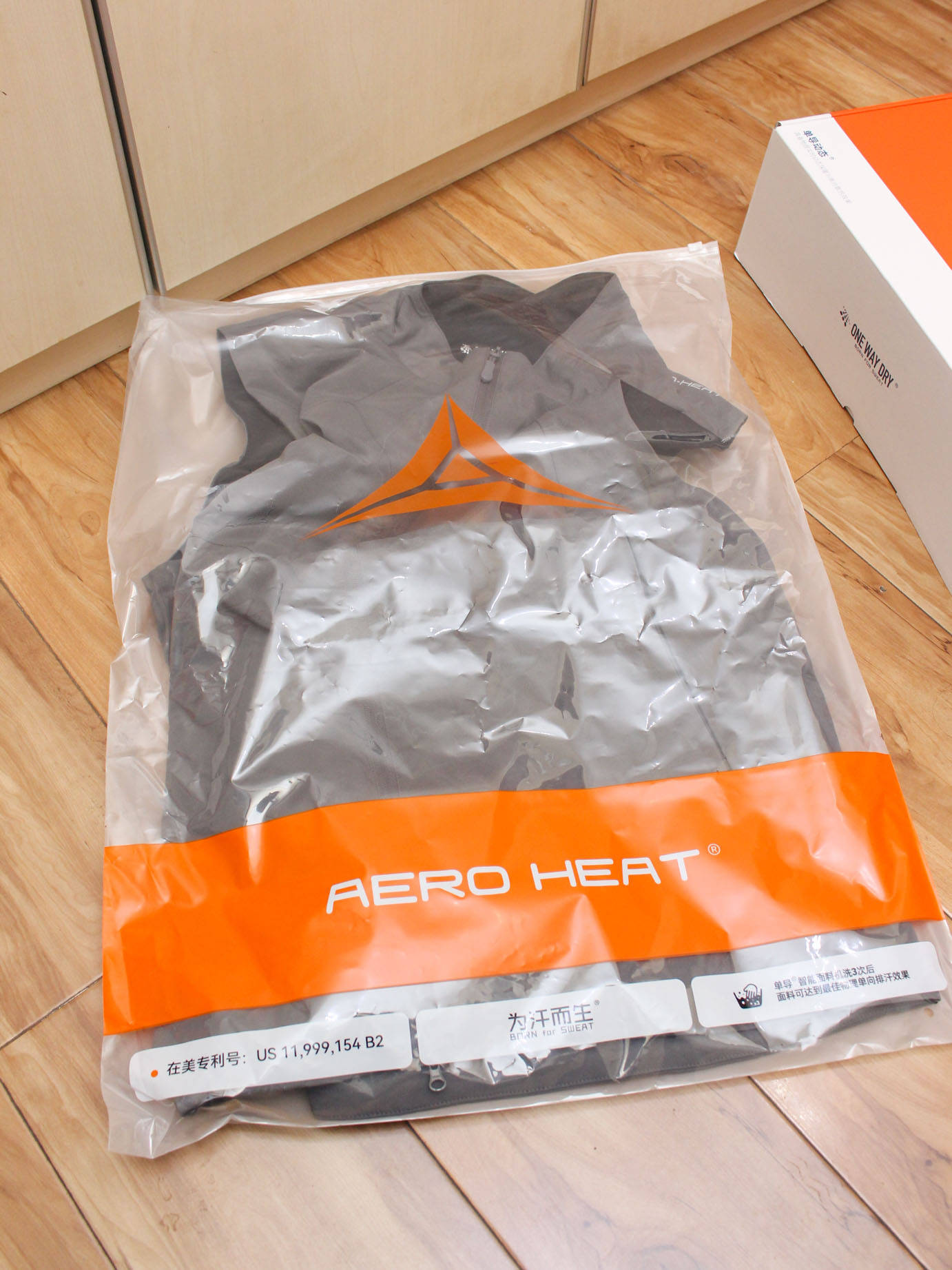 马甲上并没有品牌logo,只是在左肩的位置做了一个AERO·HEAT字样的反光印花标识。