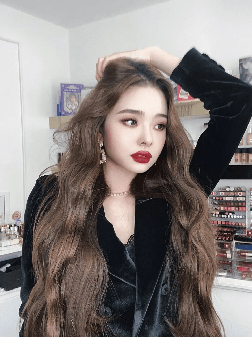 照片中,宋智雅身着一袭黑色丝绒吊带,细腻的面料勾勒出优美的肩颈线条与纤细腰肢,质感十足;下搭同色系高腰微喇裤,巧妙拉长腿部比例,搭配简约的黑色高跟鞋👠,整套造型既显高级又不失性感。她将『长发』随意挽起,露出精致的锁骨与耳间的金属耳饰,『妆容』以清冷挂为主,眼尾微微上挑,红唇点缀其间,举手投足间透着 “又美又飒” 的慵懒气场,宛如从『时尚杂志』中走出的财阀千金。