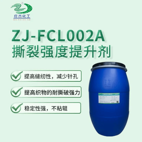 ZJ-FCL002A工装面料撕裂牢度提升剂的工作原理是通过在纤维表面形成一层均匀的保护膜,可有效保护纤维,减少织物磨损、破裂,且有效提高被整理织物撕破强力,其还包括以下价值: