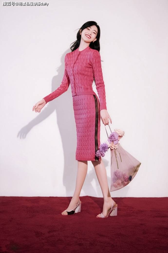 其实芭比粉的衣服还是靠人来穿的,不同人穿出的效果也不相同!比如最近42岁的『唐嫣』,就抗住了死亡芭比粉,把一套粉嫩的针织套装穿出了惊艳的感觉!『长发』披肩,笑起来娇俏如少女,看不出已经42岁!