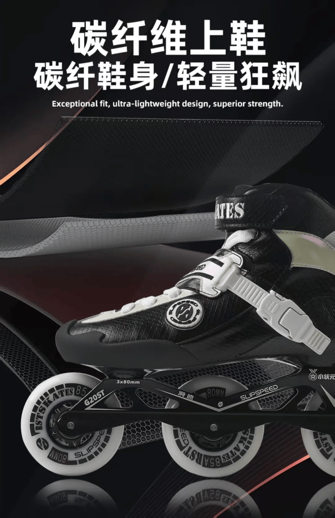 真正的专业装备,藏着对细节的极致考究。滑速G20ST从选手实际滑行场景出发,打磨多处细节设计,全方位提升竞技体验与安全性。
