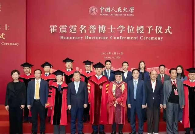 1月14日,中国人民大学深圳研究院前海院区举行庄重仪式,79岁的霍震霆获授法学名誉博士学位,人大党委书记张东刚亲自为其拨穗颁证,这份荣誉是对他数十年爱国爱港、推动体育事业发展的高度认可 。霍家两代儿子霍启山、霍启仁携家眷到场见证,而刚嫁入霍家的小儿媳南风(Namfon)的首度公开亮相,成为现场一大亮点。