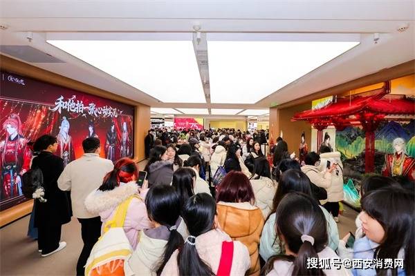 不仅是一家门店,西安旗舰店也致力于打造一座没有围墙的文化驿站和社交空间,除了呈现古代长安的历史文化,门店也将年轻人喜欢的二次元文化融入空间设计。