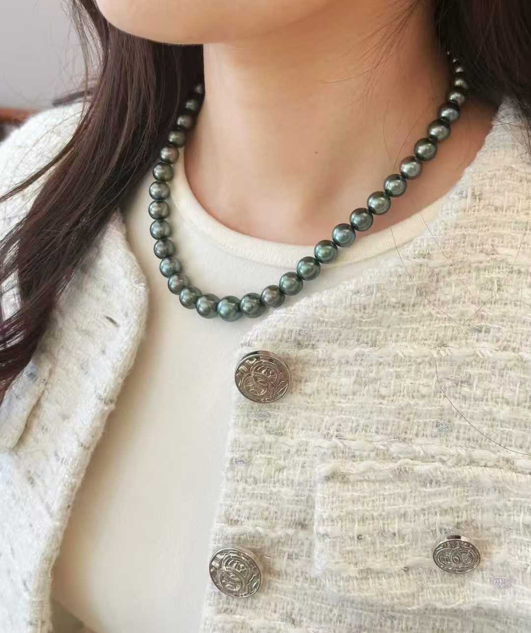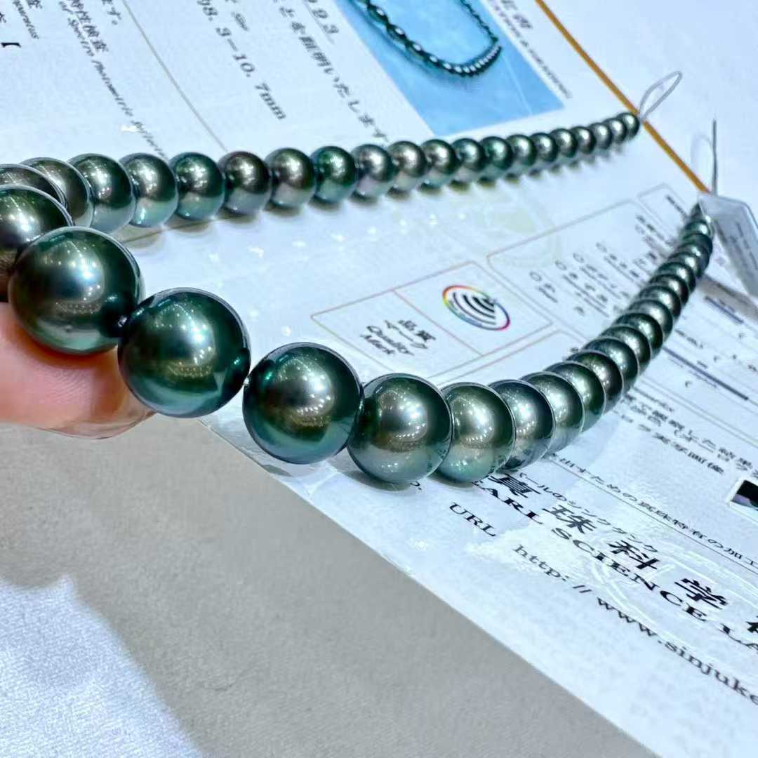 拉贡的魅力!!!不是所有黑珍珠都可以称得上拉贡级别的尺寸:8.3-10.7mm 低调奢华的天花板正圆极强光带深绿伴彩 基本无暇黑珍珠就是干练显贵 颗颗五官都能照的一清二楚一对一真科研SS“拉贡”