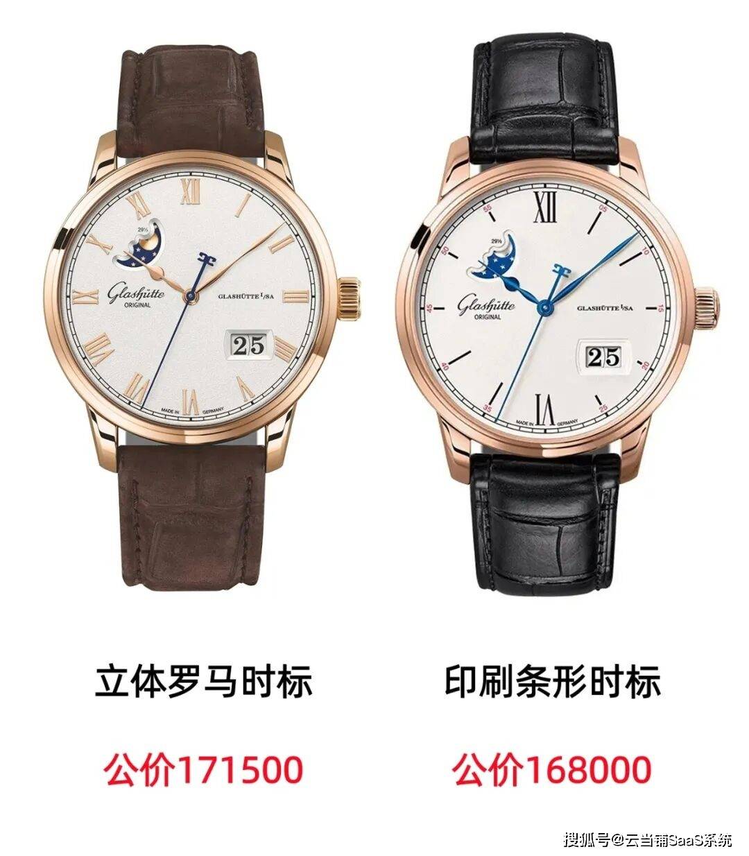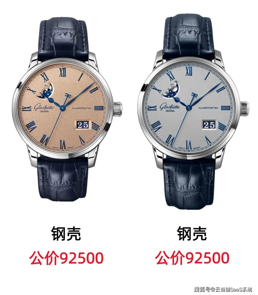 格拉苏蒂原创议员卓越大日历月相,两种不同时标款式。