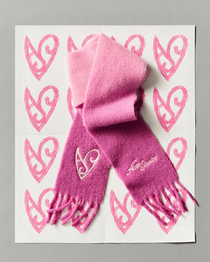 Acne Studios 2026新春限定系列以全新配色与印花诠释多款经典单品。标志性1996徽标T恤👕采用亮粉色立体植绒工艺重塑经典标识,展现热情与力量的视觉语言;Trompe-l’oeil错视立体印花长裤以松弛型廓勾勒自由形态,金色链条与爱心钥匙吊饰图案跃然其上,定格不被束缚的率性自我。同款印花『托特包』同步释出,延续错视艺术语言;明亮鲜活的渐变玫紫色Camero Party手袋👝喷涂品牌徽标,标志性钥匙吊饰与限定爱心吊饰相映成趣,复古轮廓兼具实用美学;全新推出的围巾🧣帽包裹绒绒暖意,俏皮茸球自由垂坠;经典马海毛Vally围巾🧣则以渐变玫紫色调为整个系列点睛,柔软质感结合爱心刺绣与流苏下摆,为造型渲染节日氛围。