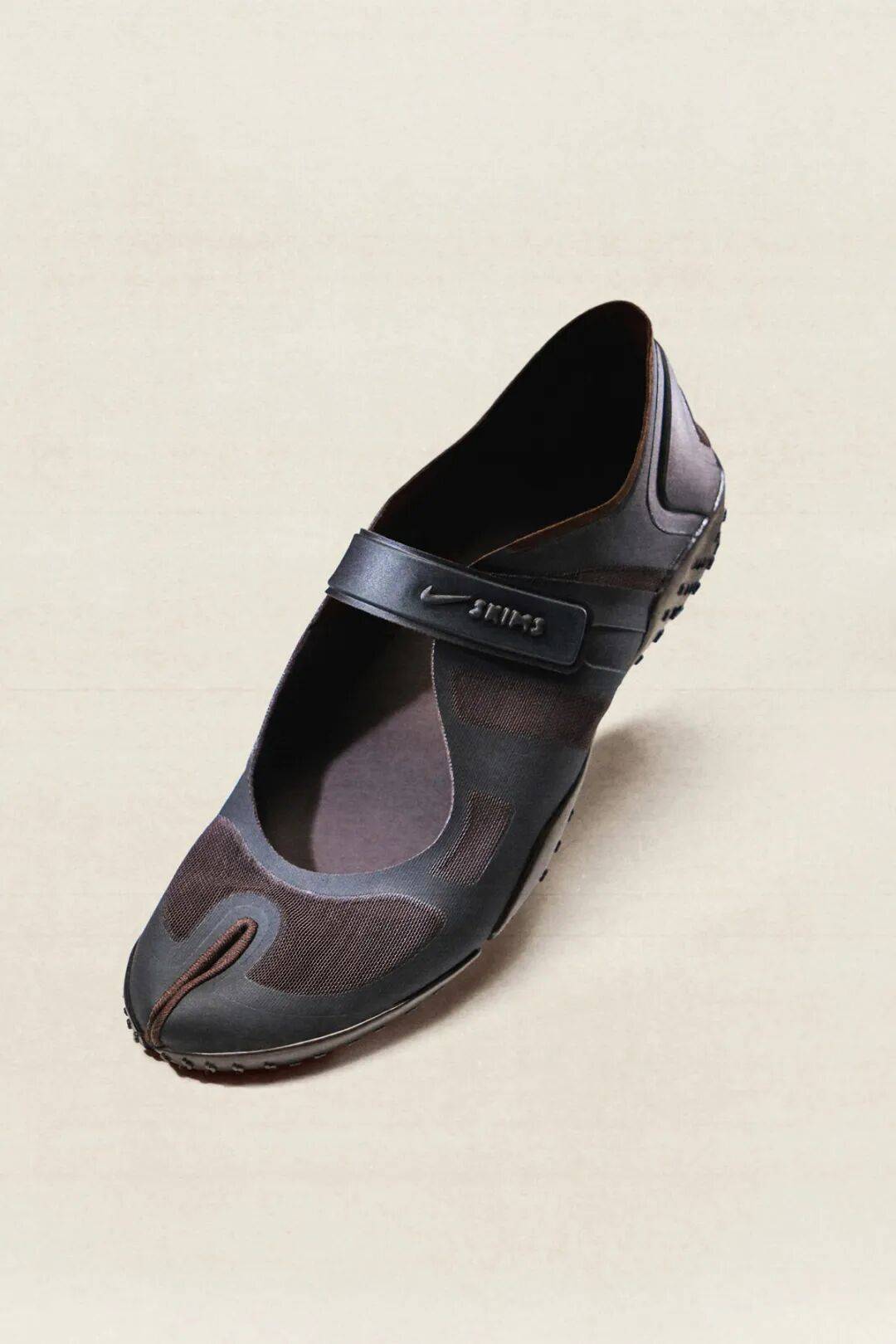 此次的 NikeSKIMS 版本在保留标志性 Tabi 分趾造型的同时,融入了更加简化、更加流畅的新设计。