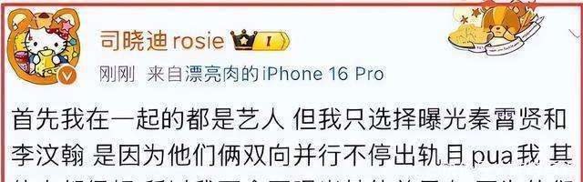 万万没想到,2026年刚刚开始,『娱乐圈』️的大瓜一个接一个,连日来让人目不暇接。昨天,大家还在热议祖师爷童锦程的瓜,今天女网红司晓迪又丢出了震撼弹。早上她在微博上发了条消息,瞬间引爆全网,自称30岁已经睡遍所有顶流,表示自己的人生已经没有遗憾了。这一微博一出,吃瓜群众们纷纷兴奋起来,但顶流哥哥们可能就要坐不住了。