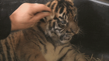 呀,小老虎,好可爱,趁着它还小赶紧多摸摸,等到它长大了之后就是它摸人了,别说摸了,你敢动一下试试。