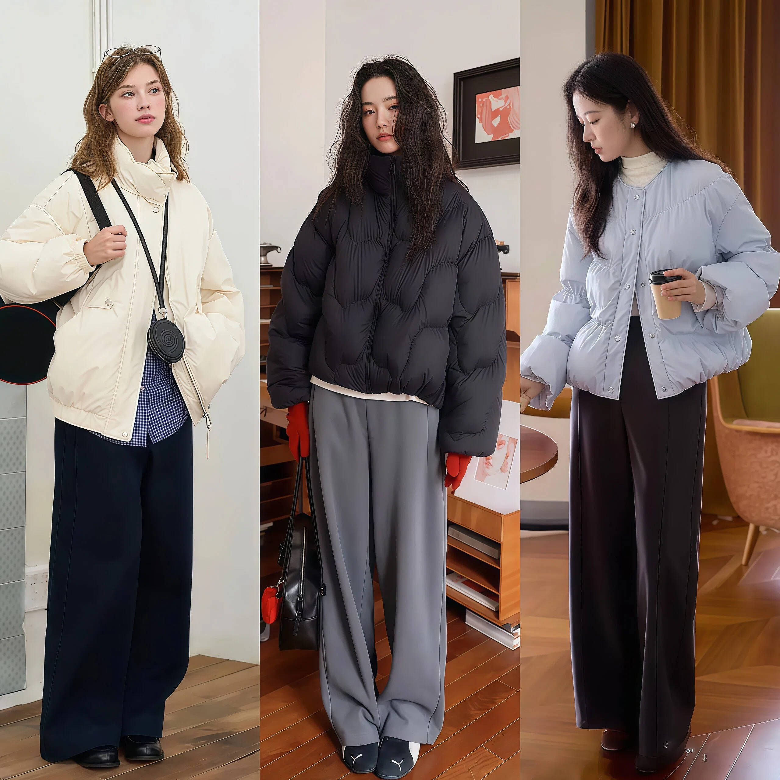 jrhz.info从通勤到逛街,从约会到周末遛弯,这个组合的适用场景都非常广,阔腿裤本身也不挑场合,搭配短款羽绒服就是休闲风,换成短款毛呢外套🧥就能去上班。对于衣柜空间有限、不想买太多单品的姐妹来说,这套公式的性价比真的非常高。