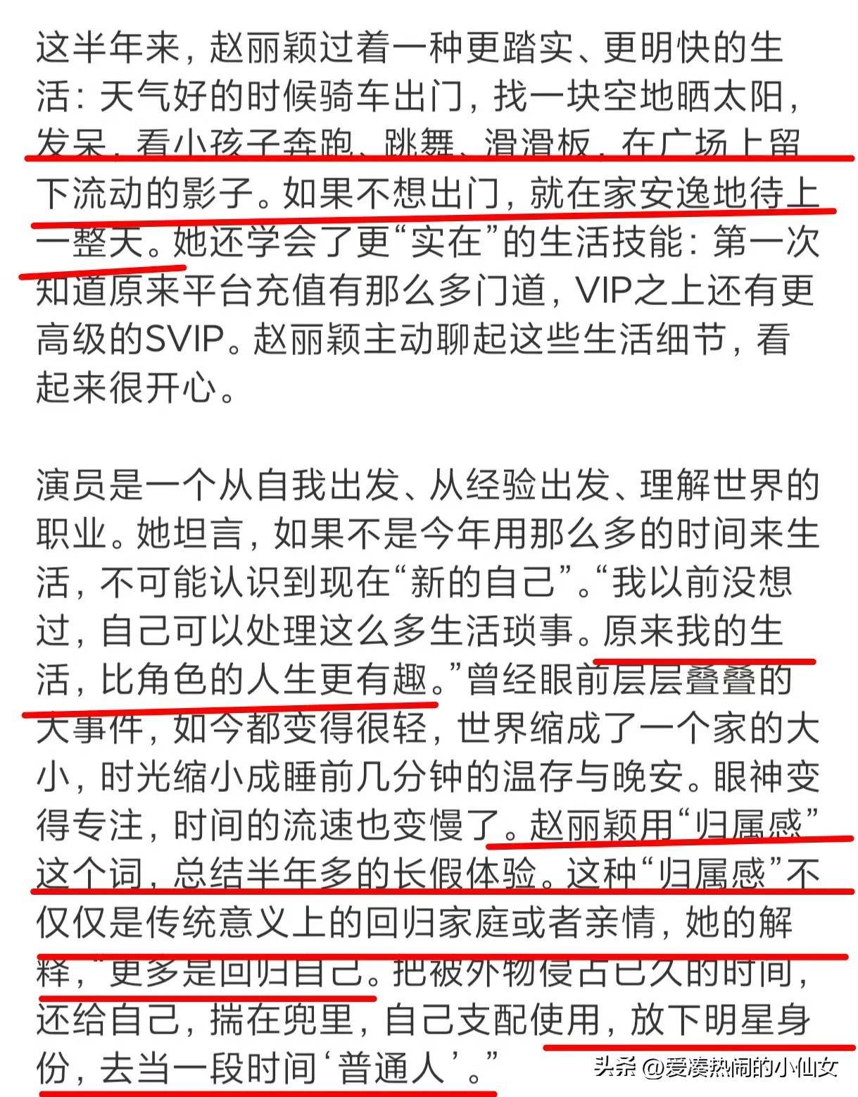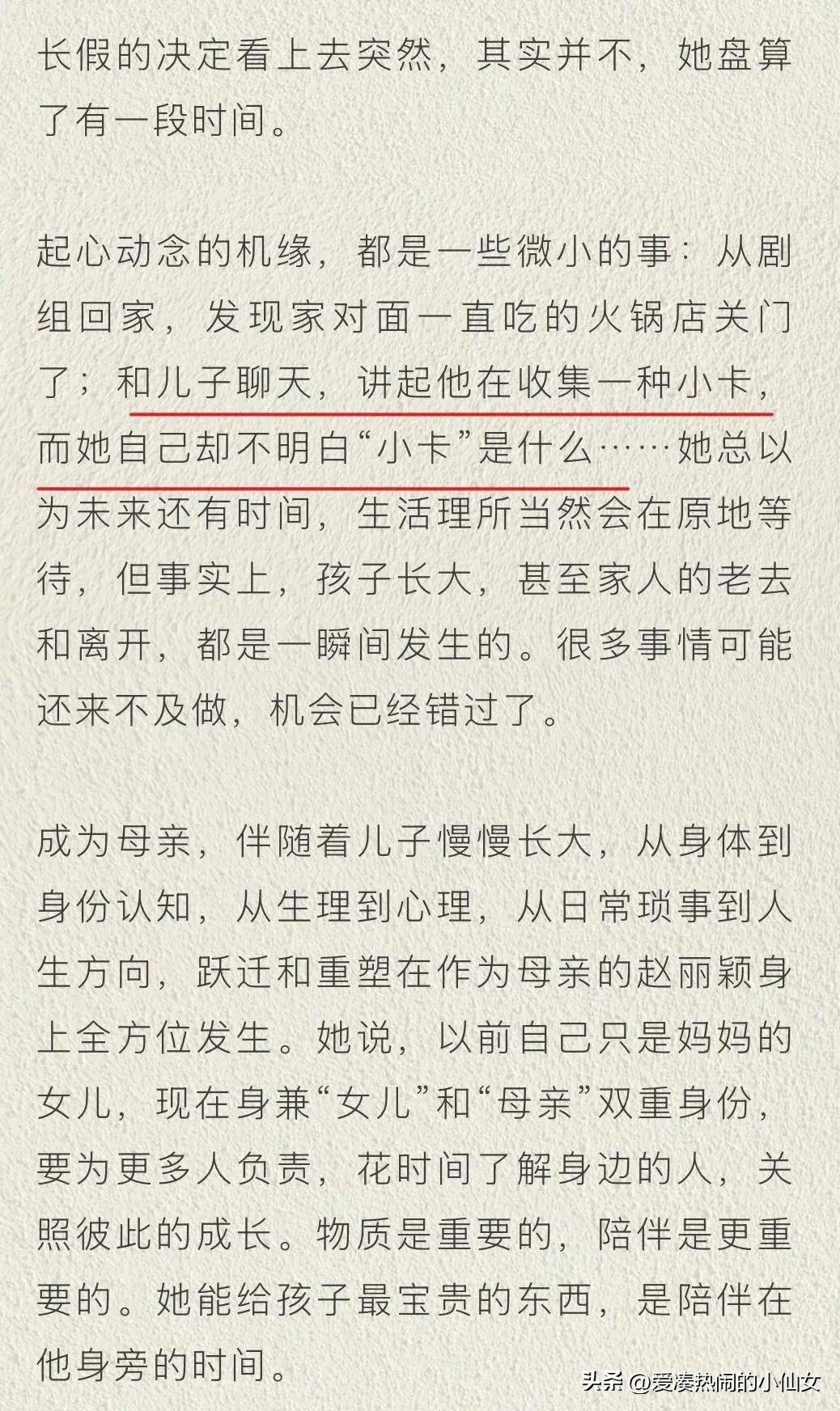 能够在风光无限的时刻停下脚步,去反思、沉淀、体验人生,这样的决定并非每个人都能做出,然而『赵丽颖』做到了。她的勇气和智慧令人钦佩。尤其是那张照片,『赵丽颖』身穿一套干净的白西装,气质清新脱俗,眼神坚定地望向前方,流露出对未来的憧憬与期待,但并没有锐利的野心,反而给人一种深沉且笃定的力量感。这大概就是她作为真正大女主的魅力吧。