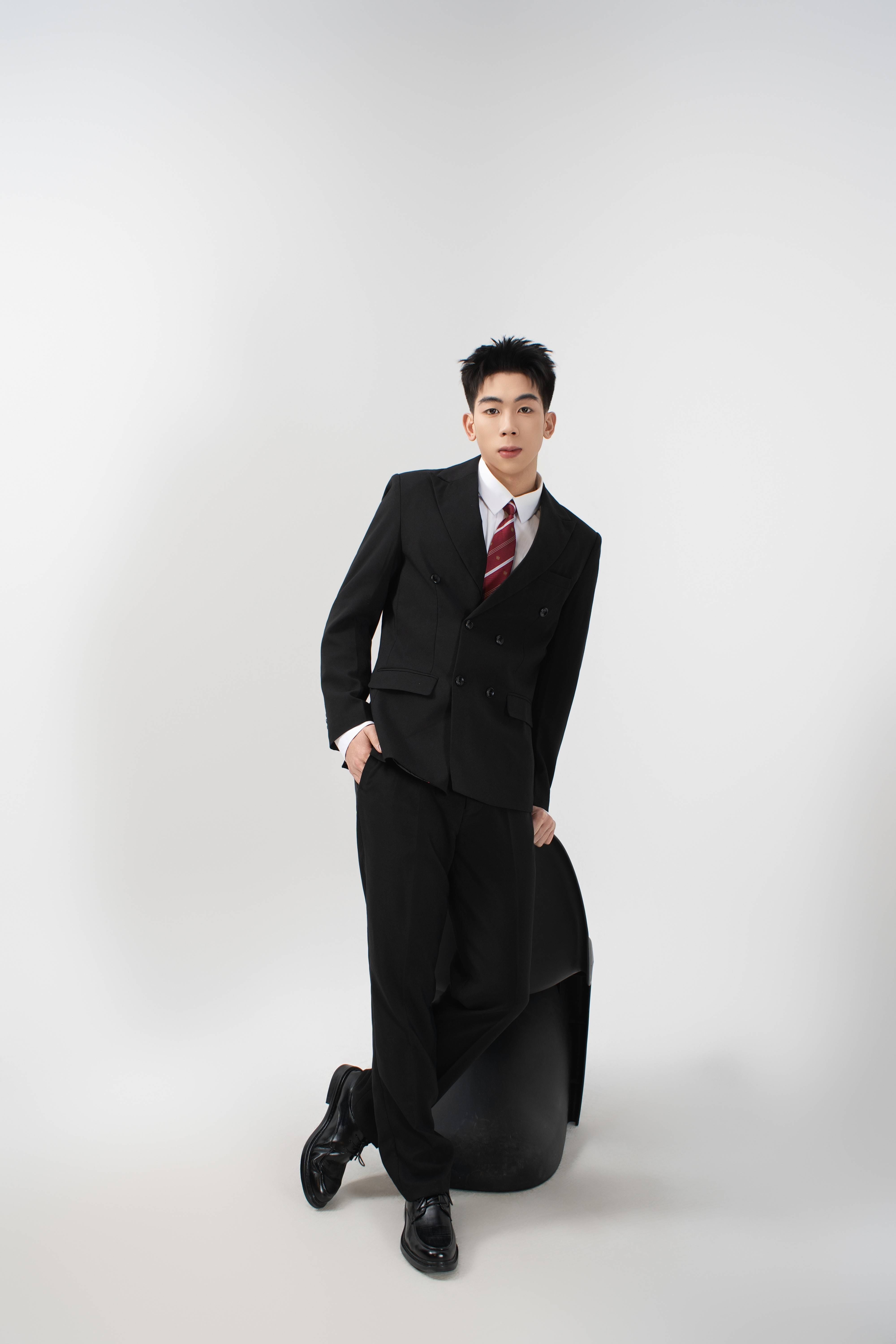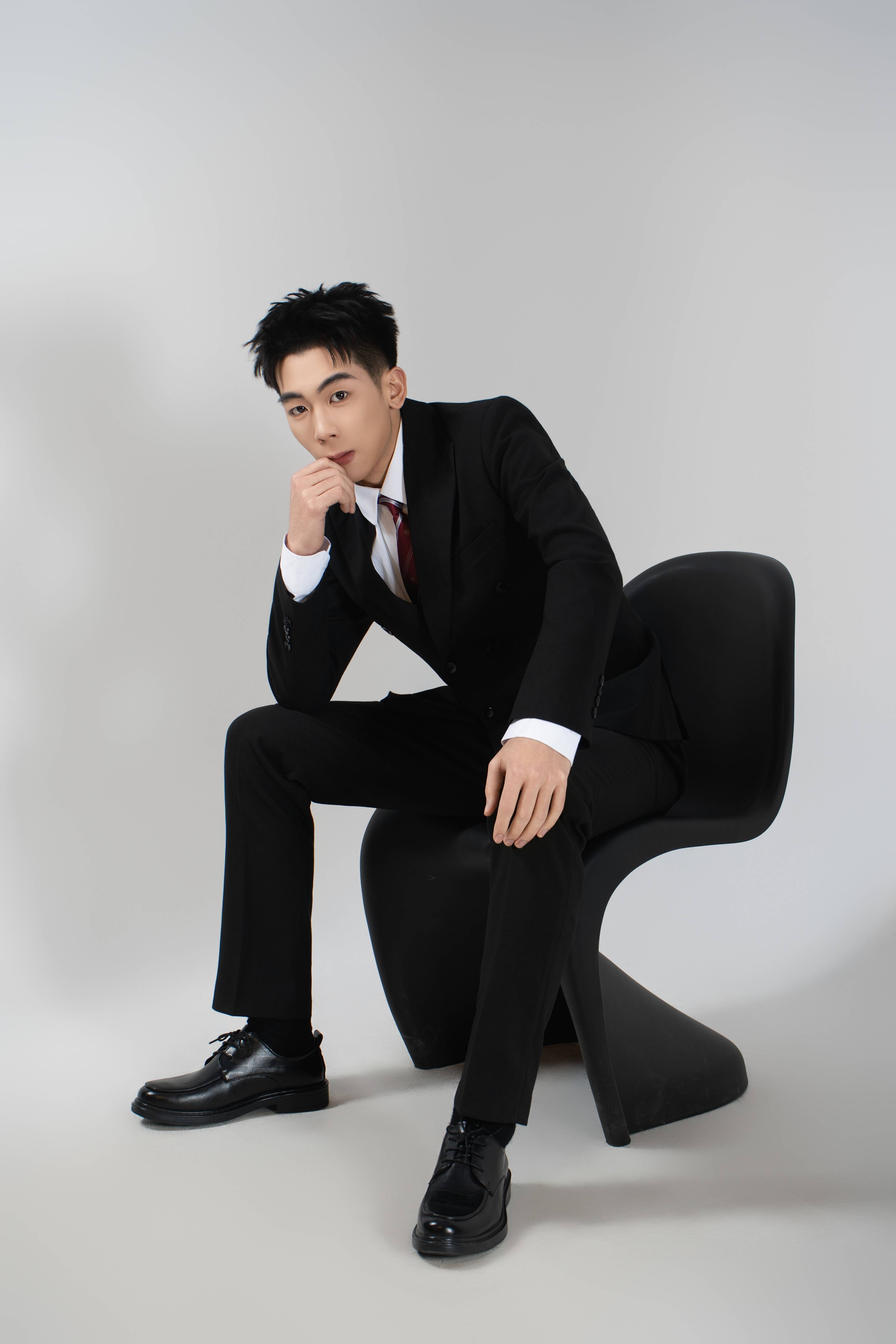 在那组黑色西装造型中,他没有用夸张的肢体去强调“精英感”,而是用松弛的坐姿、若有所思的神情,让笔挺的西装多了一份少年气的温柔。红色领带👔在白衬衫上划出利落的斜线,没有职场的压迫感,反倒像少年第一次穿上正装时,藏在严谨之下的鲜活生命力。他懂得用眼神传递情绪——侧身站立时望向镜头的一瞥,带着恰到好处的疏离感;坐在椅上托腮沉思的瞬间,又让西装的硬朗与神态的柔软形成奇妙的平衡。这种不刻意“凹造型”的松弛感,让黑色西装跳出了“商务模板”的刻板印象,变成了一个刚步入社会的青年,对成熟与青涩的温柔诠释。