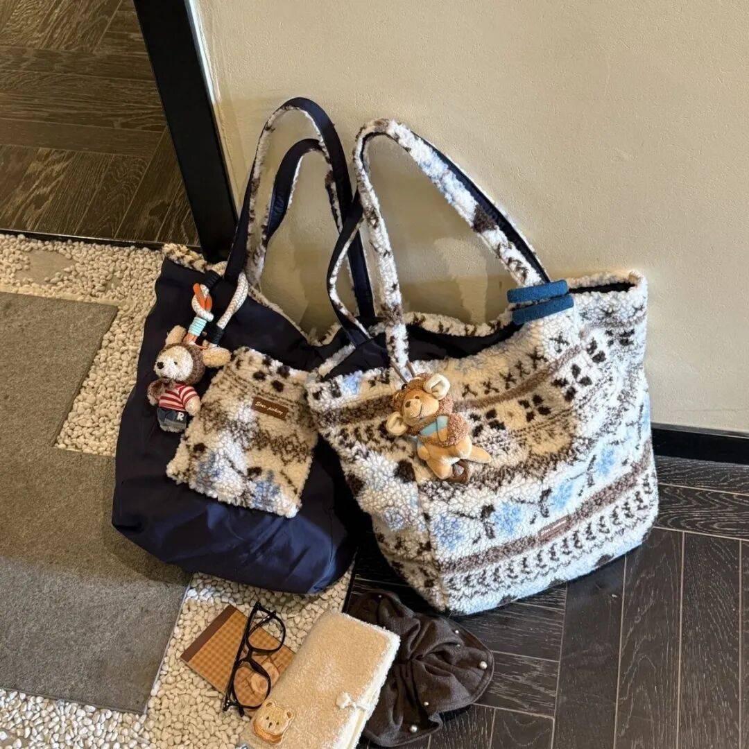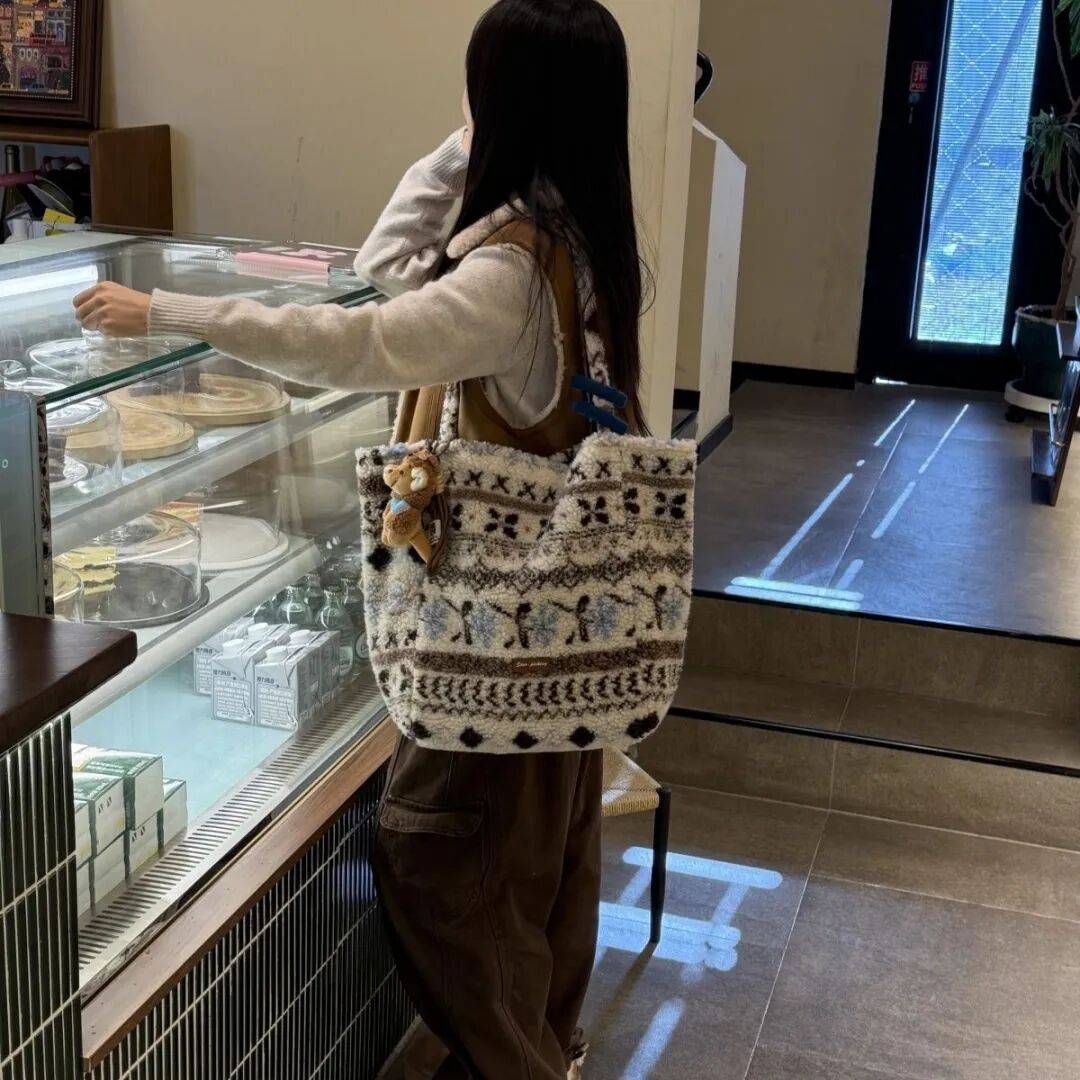 另一面是费尔岛提花毛绒,软fufu的像抱着小熊玩偶,配大衣、毛衣都超有氛围感~