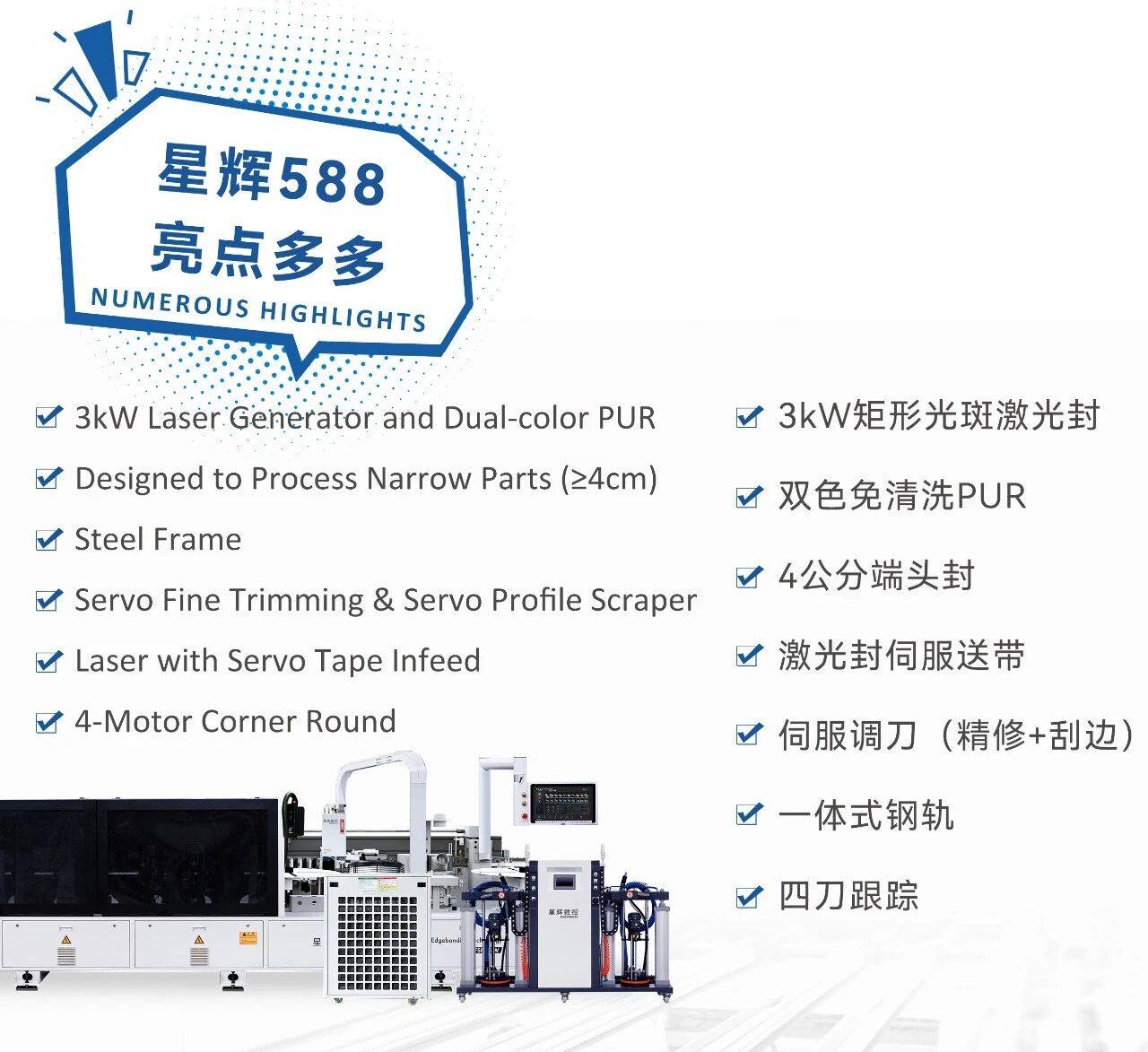 星辉数控激光封边以精准、高效、环保、稳定的卓越特性,开启了家具封边的崭新时代。无论是追求高品质的家具品牌,还是注重生产效益与环保的制造企业,星辉数控激光封边技术都无疑是理想之选,引领家具封边工艺迈向新的高度。