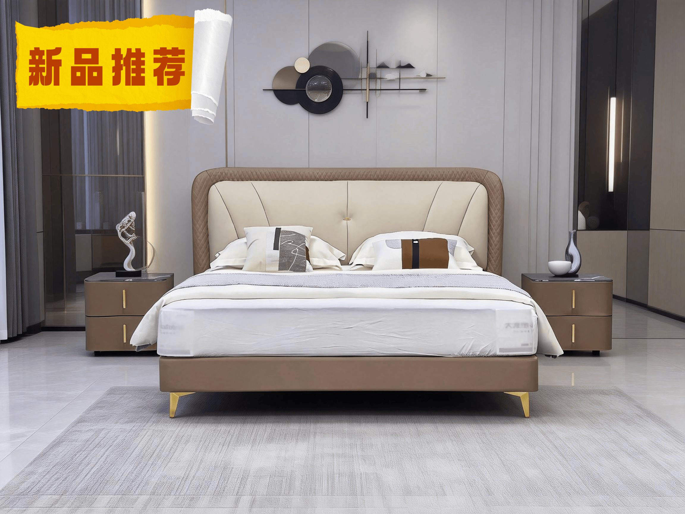 双层靠床头,菱格纹包边+金属点缀,精致如钻。