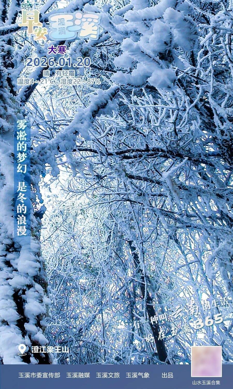 雾凇是冬的邮差,送来玉溪的邀请函。