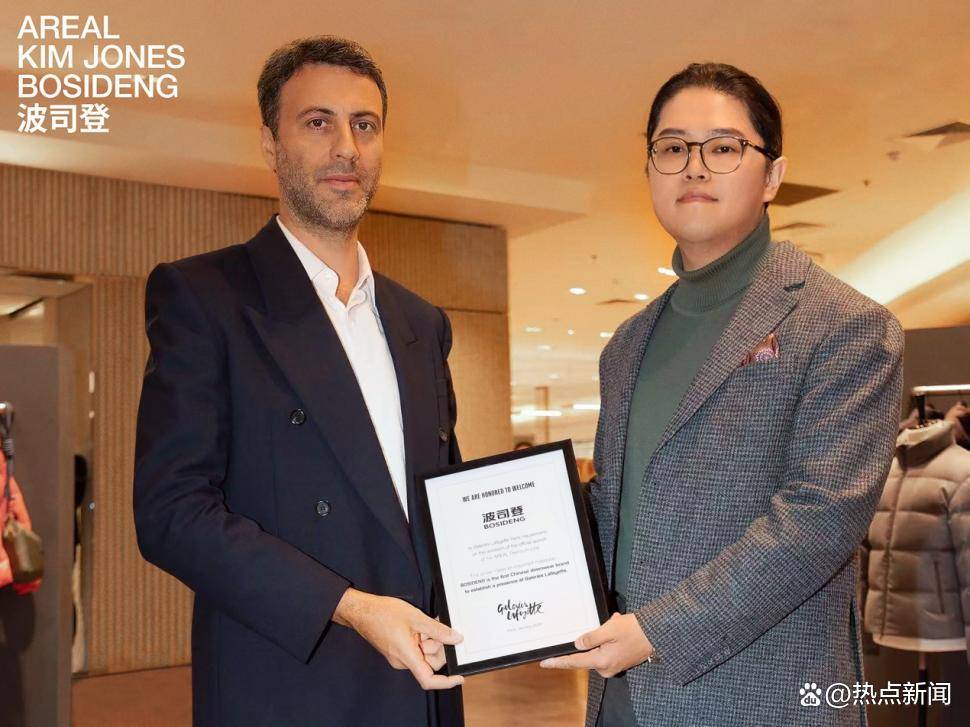 巴黎老佛爷百货CEOArthur Lemoine先生(左)为波司登集团国际业务总经理高健庭先生(右)颁发首个入驻证书