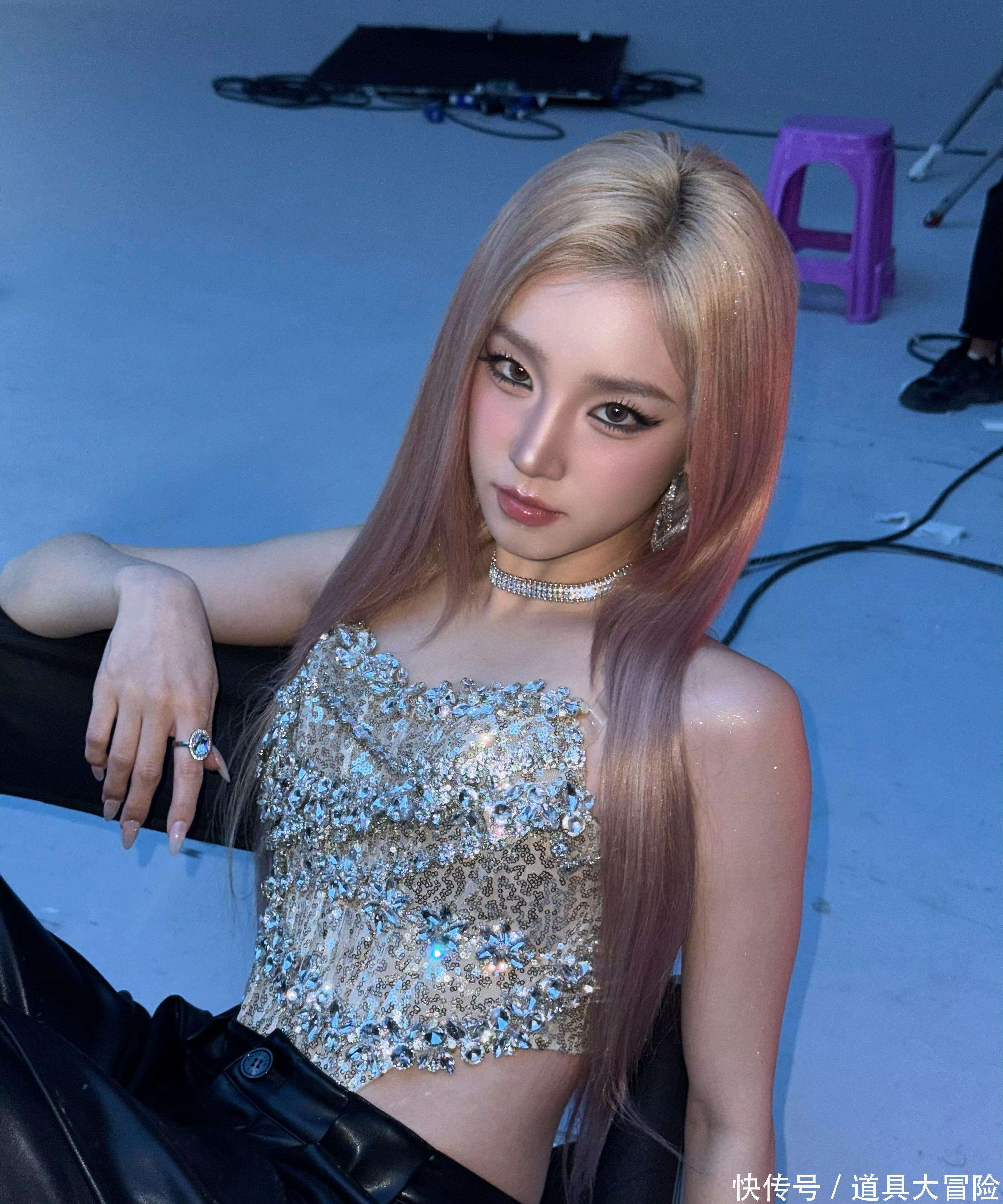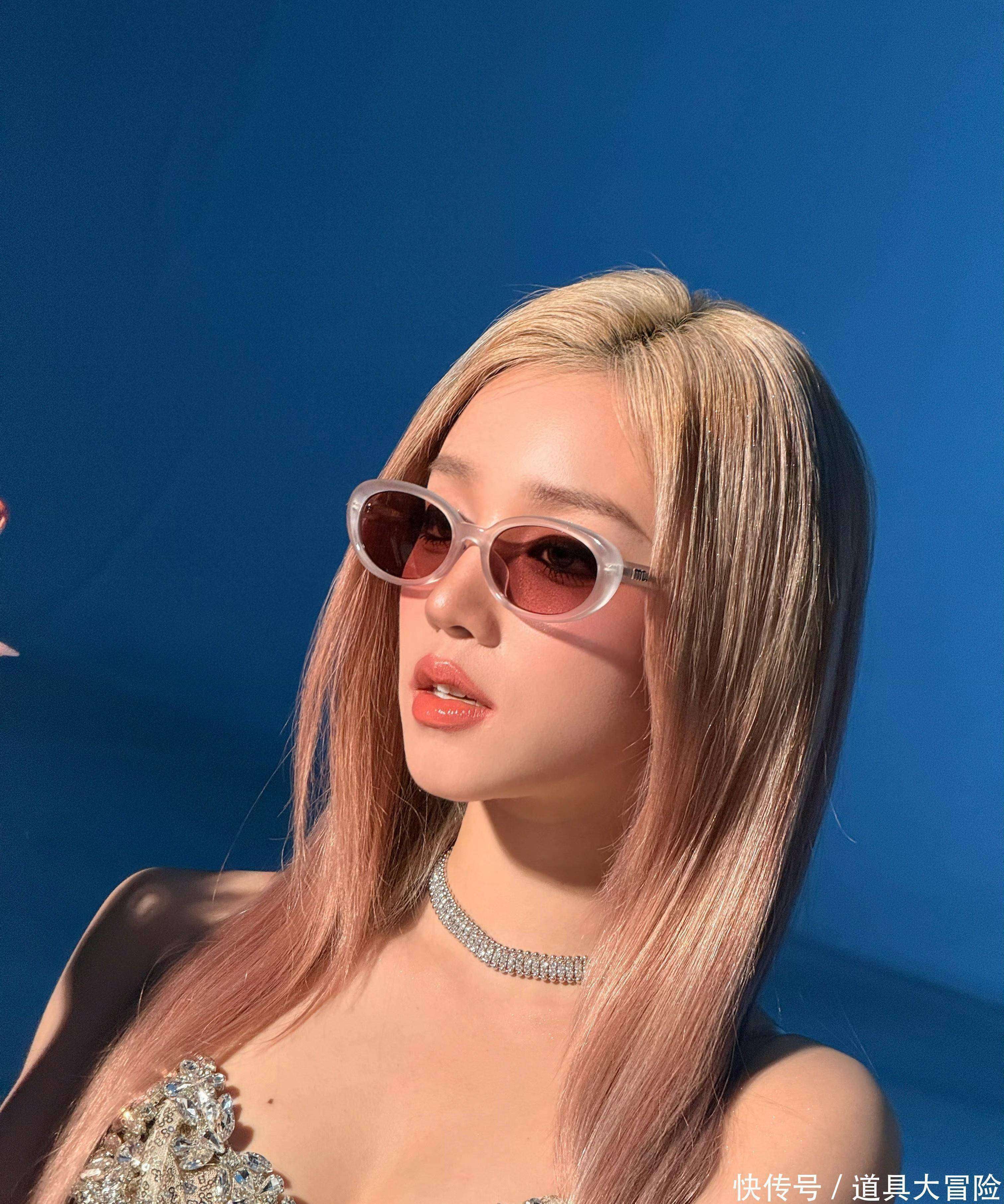 这组写真之所以让人印象深刻,不仅仅是因为造型的突破,更在于色彩与氛围的完美融合。背景中的暖橙、粉紫、冰蓝等撞色,和她的粉发与皮衣相得益彰,强化了那种甜酷的氛围。她每一个细腻的神态表达,都精确抓住了甜酷风格的核心:举手投足间的利落、歪头时的娇憨、戴墨镜🕶️时的冷艳,每一个瞬间都恰到好处,增添了无尽的故事感和视觉冲击力。在暖橙背景中,她穿上棕色皮衣,戴着豹纹发带,宛如复古街头的辣妹;在粉紫背景中,她咬着棒棒糖,回归了甜美少女的形象;而在冰蓝背景前,她戴着墨镜🕶️,穿着钻饰抹胸,冷艳感十足。她通过神态的细微变化,展现出那种甜而不腻、酷而不凶的魅力,让每一张照片都充满了层次感与戏剧性。