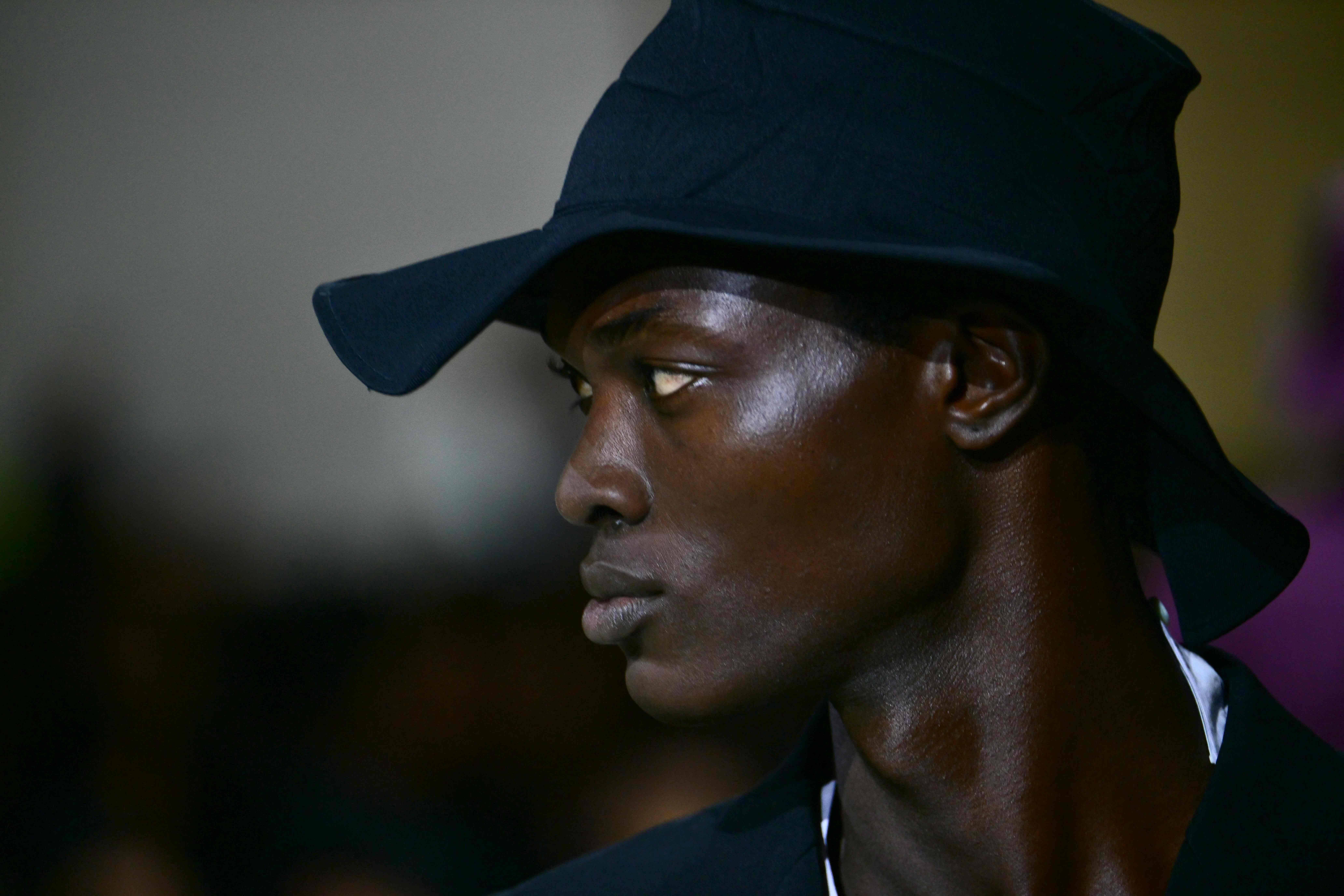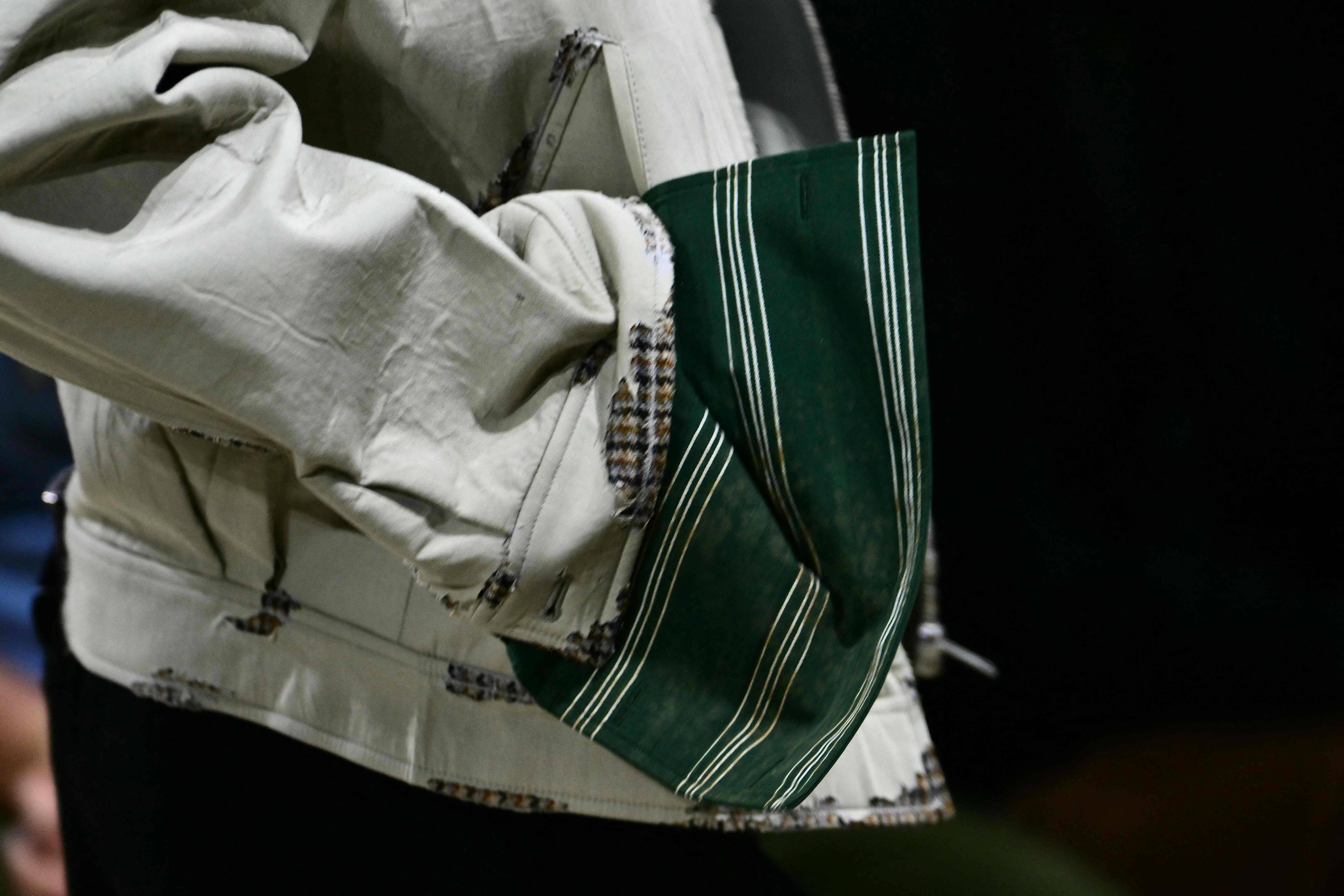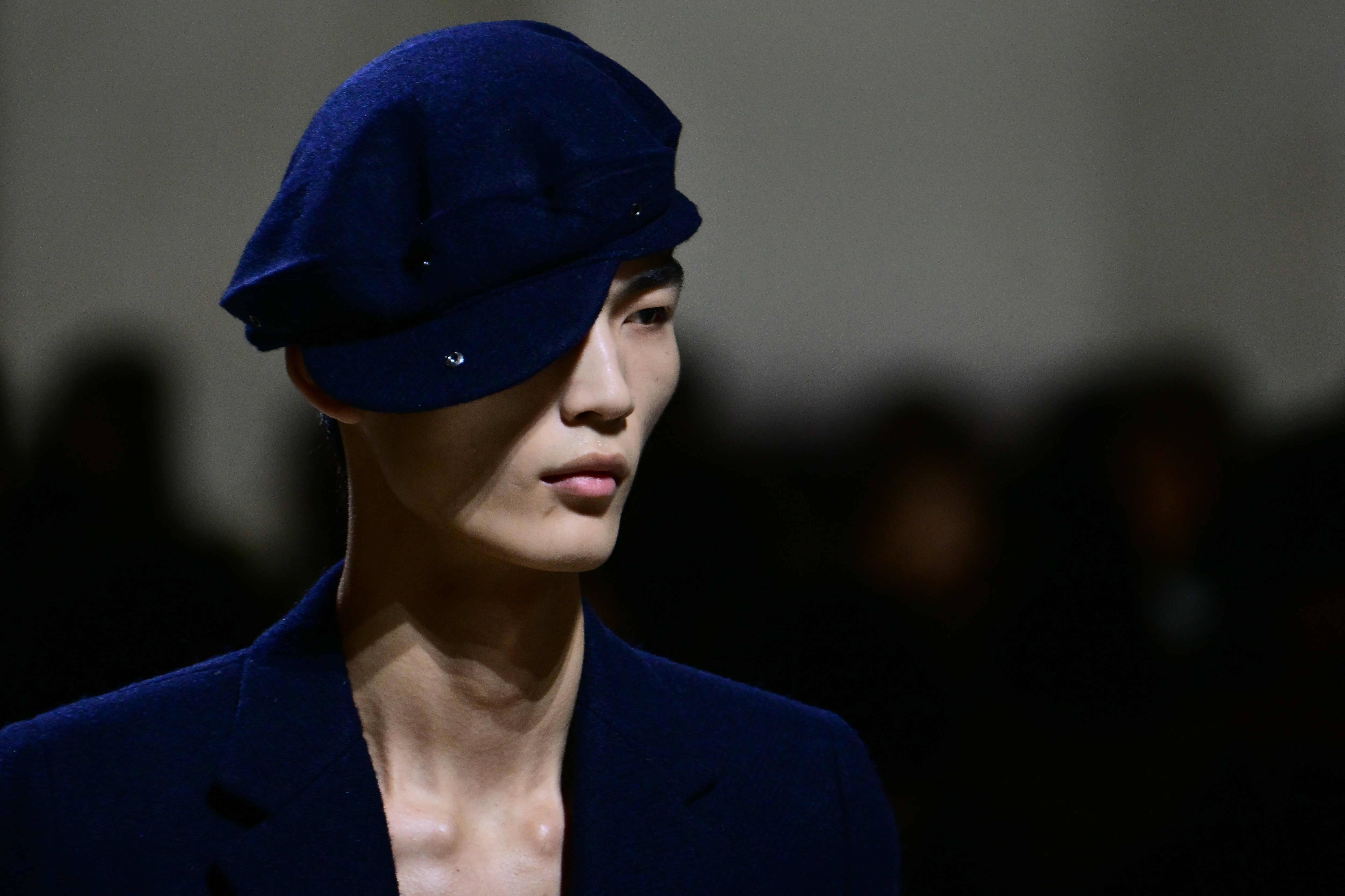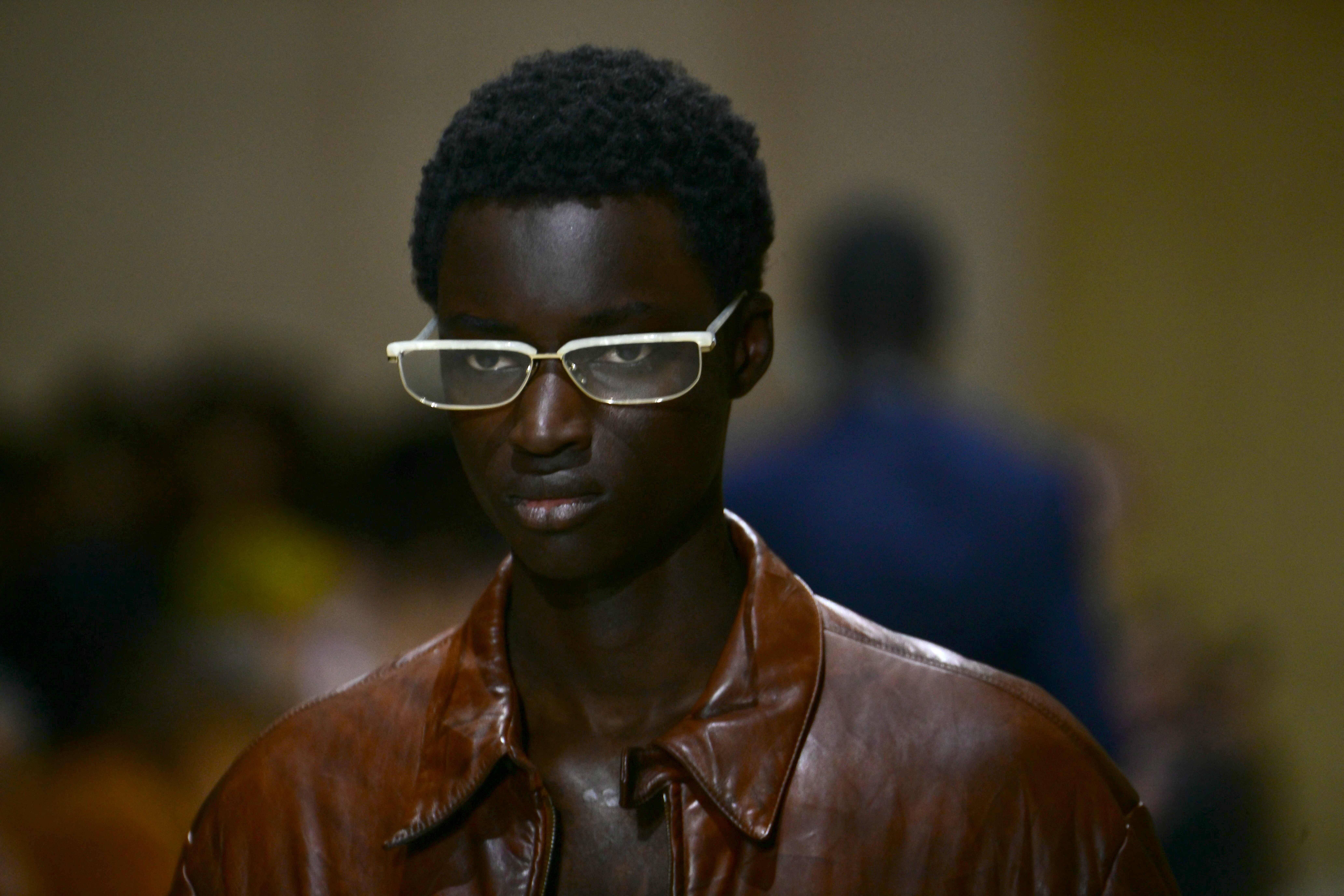 1月18日,模特在意大利米兰男装周上展示普拉达品牌的新品时装。 今日霍州/法新