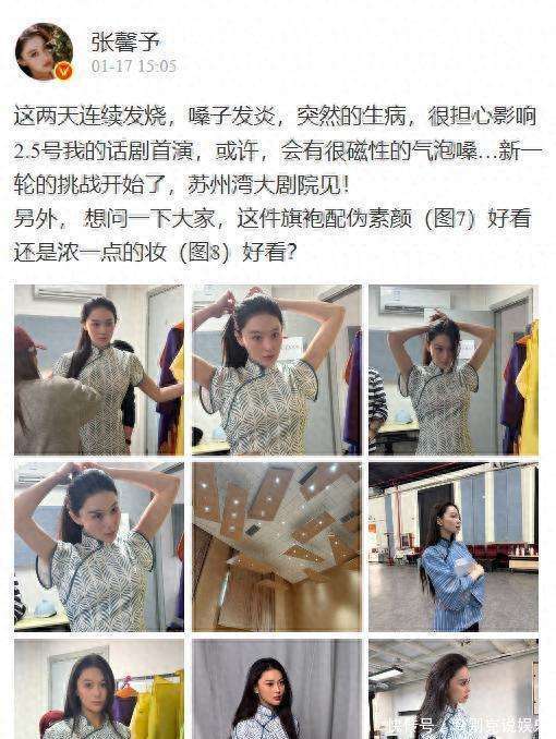 『张馨予』连续两天发烧、嗓子发炎!坚持穿短旗袍排练话剧,素颜真美(『张馨予』罕见)